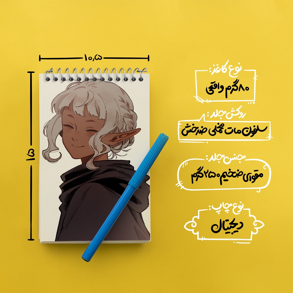 برند خندالو در زمینه تولید انواع دفاتر فانتزی و تحصیلی فعالیت میکند که به دلیل جذابیت ظاهری و طرح های متنوع طرفداران زیادی دارد. دفتر یادداشت خندالو طرح ثیستل انیمه خوشمزه در سیاه چال محصولی مناسب برای همه عاشقان لوازم التحریر است و همچنین همه کسانی که بنا به موقعیت تحصیل یا شغلشان با دفتر و نوشت افزار زیاد سر و کار دارند. در تولید دفتر یادداشت خندالو طرح ثیستل انیمه خوشمزه در سیاه چال از نوع صحافی فنر مارپیچ استفاده شده که در این نوع صحافی برگهها به راحتی چرخیده و یا بیرون آورده می شوند. دفتر های خندالو دارای جلد انعطاف پذیر از جنس مقوای گلاسه 250 گرم با روکش سلفون مات مخملی است که به شما امکان میدهد از دفتر خود بدون اینکه نگرانی از شکستن یا خراب شدن جلد را داشته باشید استفاده کنید و همچنین در این دفاتر از کاغذ 80 گرم با کیفیت استفاده شده که باعث میشود هنگام نوشتن به خوبی جوهر قلم بر روی صفحه نشسته و از خط خوردگیها جلوگیری کند. دفتر یادداشت خندالو با جنس و دوام مناسب، برگه های کاملاً سفید و خطوط طوسی دقیق را داراست که انسان را به نوشتن منظم و زیبا ترغیب میکند. طراحی کاملاً مناسب این دفاتر، به همراه کیفیت بالا، از آن یک محصول مورد علاقه و قابل اعتماد برای همه مقاطع تحصیلی میسازد. دفتر یادداشت خندالو طرح ثیستل انیمه خوشمزه در سیاه چال انتخابی هوشمندانه و مناسب برای افرادی است که به دنبال دفتری با کیفیت و کاربرد عالی هستند. این دفتر، همراه خوبی برای شما در تمام مراحل تحصیل و کار خواهد بود و تجربهای لذتبخش از نوشتن و آموختن را به شما هدیه میدهد.