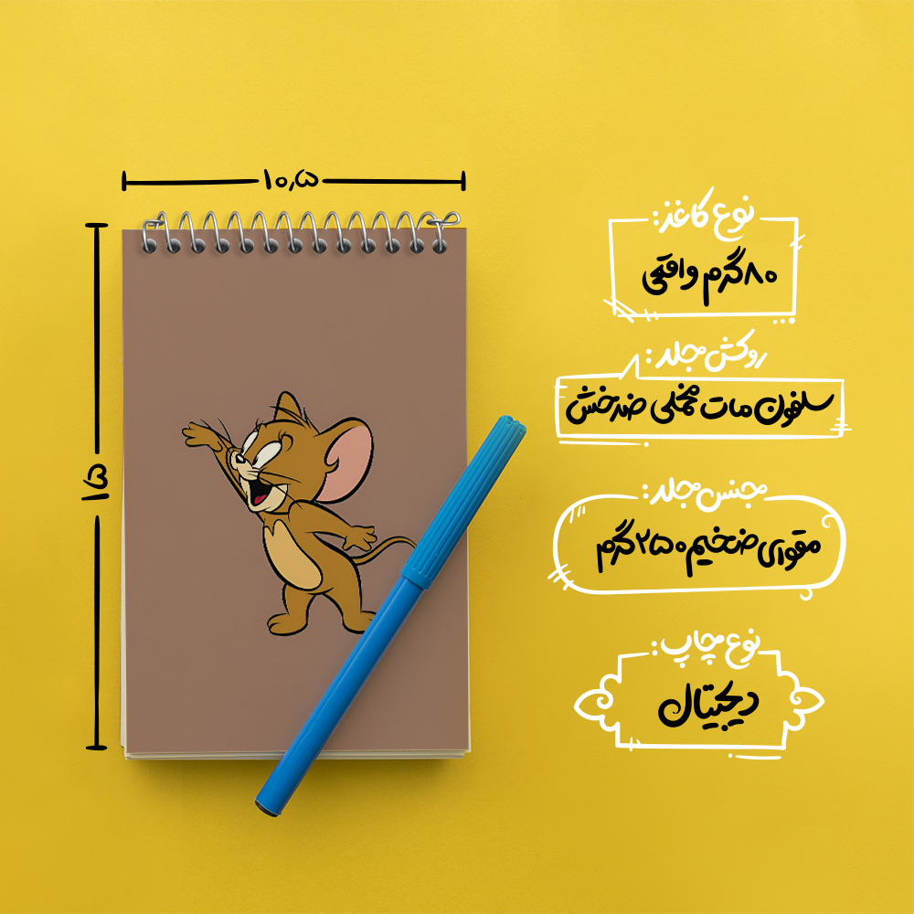 برند خندالو در زمینه تولید انواع دفاتر فانتزی و تحصیلی فعالیت میکند که به دلیل جذابیت ظاهری و طرح های متنوع طرفداران زیادی دارد. دفتر یادداشت خندالو طرح جری (Jerry) محصولی مناسب برای همه عاشقان لوازم التحریر است و همچنین همه کسانی که بنا به موقعیت تحصیل یا شغلشان با دفتر و نوشت افزار زیاد سر و کار دارند. در تولید دفتر یادداشت خندالو طرح جری (Jerry) از نوع صحافی فنر مارپیچ استفاده شده که در این نوع صحافی برگه‌ها به راحتی چرخیده و یا بیرون آورده می شوند.