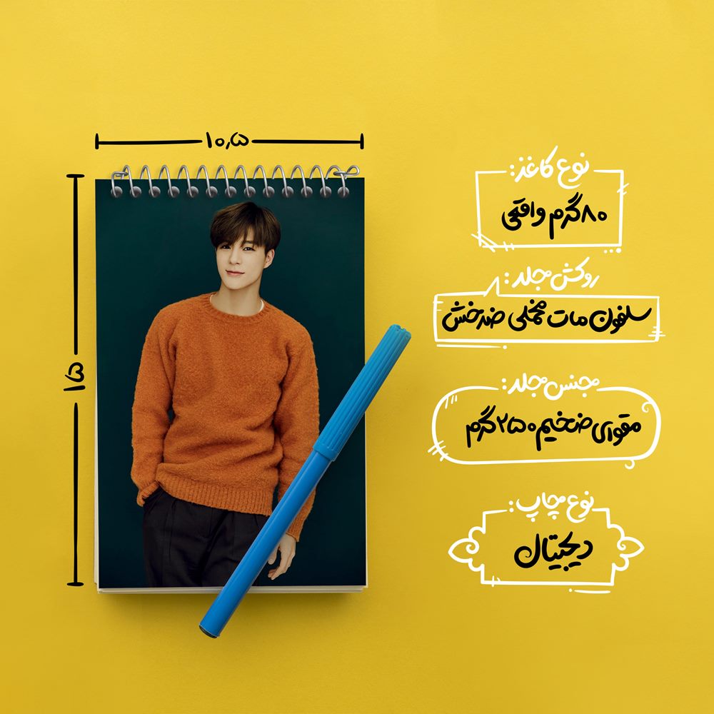 برند خندالو در زمینه تولید انواع دفاتر فانتزی و تحصیلی فعالیت میکند که به دلیل جذابیت ظاهری و طرح های متنوع طرفداران زیادی دارد. دفتر یادداشت خندالو طرح جنو گروه NCT محصولی مناسب برای همه عاشقان لوازم التحریر است و همچنین همه کسانی که بنا به موقعیت تحصیل یا شغلشان با دفتر و نوشت افزار زیاد سر و کار دارند. در تولید دفتر یادداشت خندالو طرح جنو گروه NCT از نوع صحافی فنر مارپیچ استفاده شده که در این نوع صحافی برگهها به راحتی چرخیده و یا بیرون آورده می شوند. دفتر های خندالو دارای جلد انعطاف پذیر از جنس مقوای گلاسه 250 گرم با روکش سلفون مات مخملی است که به شما امکان میدهد از دفتر خود بدون اینکه نگرانی از شکستن یا خراب شدن جلد را داشته باشید استفاده کنید و همچنین در این دفاتر از کاغذ 80 گرم با کیفیت استفاده شده که باعث میشود هنگام نوشتن به خوبی جوهر قلم بر روی صفحه نشسته و از خط خوردگیها جلوگیری کند. دفتر یادداشت خندالو با جنس و دوام مناسب، برگه های کاملاً سفید و خطوط طوسی دقیق را داراست که انسان را به نوشتن منظم و زیبا ترغیب میکند. طراحی کاملاً مناسب این دفاتر، به همراه کیفیت بالا، از آن یک محصول مورد علاقه و قابل اعتماد برای همه مقاطع تحصیلی میسازد. دفتر یادداشت خندالو طرح جنو گروه NCT انتخابی هوشمندانه و مناسب برای افرادی است که به دنبال دفتری با کیفیت و کاربرد عالی هستند. این دفتر، همراه خوبی برای شما در تمام مراحل تحصیل و کار خواهد بود و تجربهای لذتبخش از نوشتن و آموختن را به شما هدیه میدهد.
