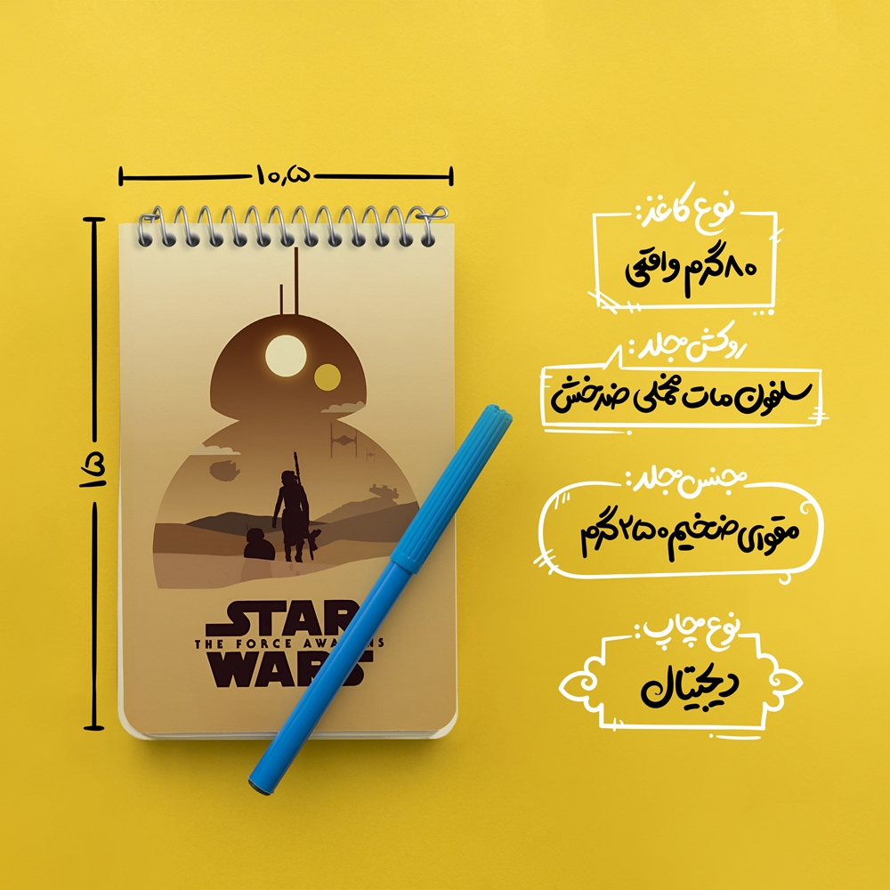 برند خندالو در زمینه تولید انواع دفاتر فانتزی و تحصیلی فعالیت میکند که به دلیل جذابیت ظاهری و طرح های متنوع طرفداران زیادی دارد. دفتر یادداشت خندالو طرح جنگ ستارگان محصولی مناسب برای همه عاشقان لوازم التحریر است و همچنین همه کسانی که بنا به موقعیت تحصیل یا شغلشان با دفتر و نوشت افزار زیاد سر و کار دارند. در تولید دفتر یادداشت خندالو طرح جنگ ستارگان از نوع صحافی فنر مارپیچ استفاده شده که در این نوع صحافی برگهها به راحتی چرخیده و یا بیرون آورده می شوند. دفتر های خندالو دارای جلد انعطاف پذیر از جنس مقوای گلاسه 250 گرم با روکش سلفون مات مخملی است که به شما امکان میدهد از دفتر خود بدون اینکه نگرانی از شکستن یا خراب شدن جلد را داشته باشید استفاده کنید و همچنین در این دفاتر از کاغذ 80 گرم با کیفیت استفاده شده که باعث میشود هنگام نوشتن به خوبی جوهر قلم بر روی صفحه نشسته و از خط خوردگیها جلوگیری کند. دفتر یادداشت خندالو با جنس و دوام مناسب، برگه های کاملاً سفید و خطوط طوسی دقیق را داراست که انسان را به نوشتن منظم و زیبا ترغیب میکند. طراحی کاملاً مناسب این دفاتر، به همراه کیفیت بالا، از آن یک محصول مورد علاقه و قابل اعتماد برای همه مقاطع تحصیلی میسازد. دفتر یادداشت خندالو طرح جنگ ستارگان انتخابی هوشمندانه و مناسب برای افرادی است که به دنبال دفتری با کیفیت و کاربرد عالی هستند. این دفتر، همراه خوبی برای شما در تمام مراحل تحصیل و کار خواهد بود و تجربهای لذتبخش از نوشتن و آموختن را به شما هدیه میدهد.