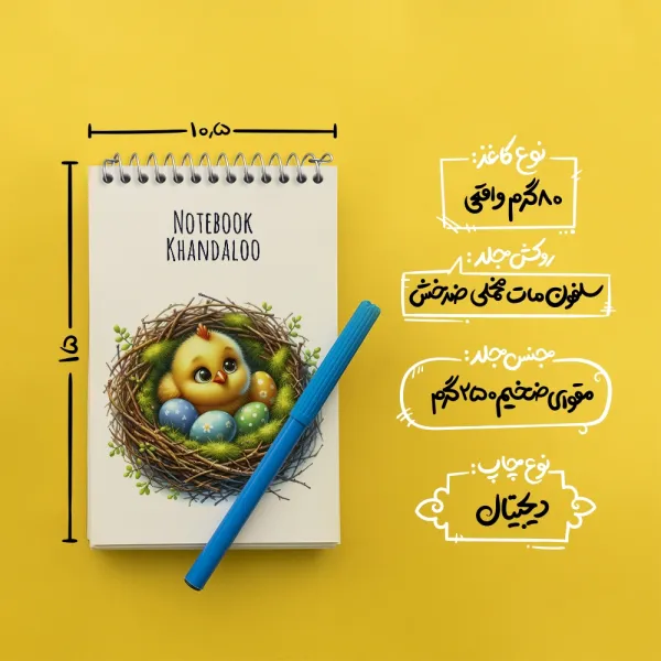 برند خندالو در زمینه تولید انواع دفاتر فانتزی و تحصیلی فعالیت میکند که به دلیل جذابیت ظاهری و طرح های متنوع طرفداران زیادی دارد. دفتر یادداشت خندالو طرح جوجه بامزه محصولی مناسب برای همه عاشقان لوازم التحریر است و همچنین همه کسانی که بنا به موقعیت تحصیل یا شغلشان با دفتر و نوشت افزار زیاد سر و کار دارند. در تولید دفتر یادداشت خندالو طرح جوجه بامزه از نوع صحافی فنر مارپیچ استفاده شده که در این نوع صحافی برگه‌ها به راحتی چرخیده و یا بیرون آورده می شوند.