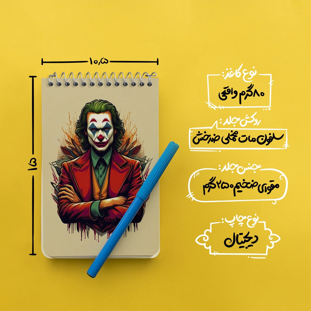 برند خندالو در زمینه تولید انواع دفاتر فانتزی و تحصیلی فعالیت میکند که به دلیل جذابیت ظاهری و طرح های متنوع طرفداران زیادی دارد. دفتر یادداشت خندالو طرح جوکر (Joker) محصولی مناسب برای همه عاشقان لوازم التحریر است و همچنین همه کسانی که بنا به موقعیت تحصیل یا شغلشان با دفتر و نوشت افزار زیاد سر و کار دارند. در تولید دفتر یادداشت خندالو طرح جوکر (Joker) از نوع صحافی فنر مارپیچ استفاده شده که در این نوع صحافی برگه‌ها به راحتی چرخیده و یا بیرون آورده می شوند.