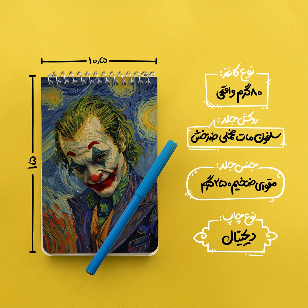 برند خندالو در زمینه تولید انواع دفاتر فانتزی و تحصیلی فعالیت میکند که به دلیل جذابیت ظاهری و طرح های متنوع طرفداران زیادی دارد. دفتر یادداشت خندالو طرح جوکر (Joker) محصولی مناسب برای همه عاشقان لوازم التحریر است و همچنین همه کسانی که بنا به موقعیت تحصیل یا شغلشان با دفتر و نوشت افزار زیاد سر و کار دارند. در تولید دفتر یادداشت خندالو طرح جوکر (Joker) از نوع صحافی فنر مارپیچ استفاده شده که در این نوع صحافی برگه‌ها به راحتی چرخیده و یا بیرون آورده می شوند.