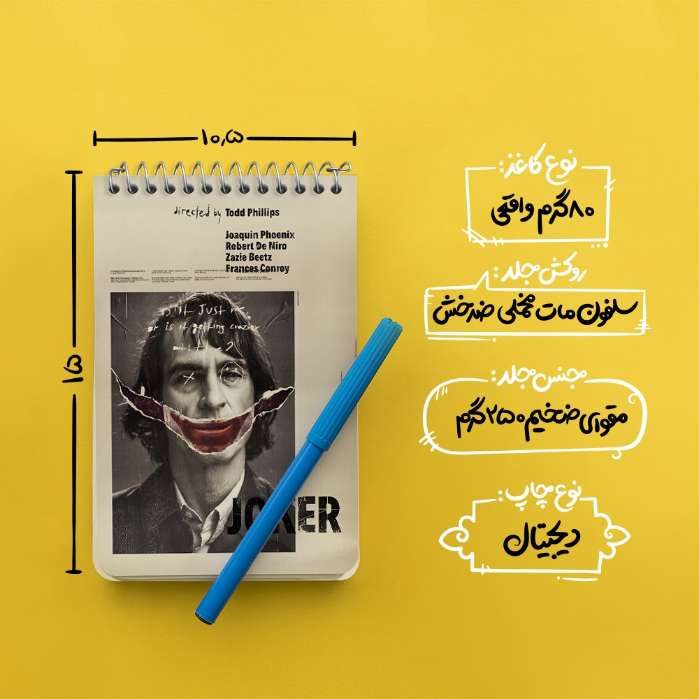 برند خندالو در زمینه تولید انواع دفاتر فانتزی و تحصیلی فعالیت میکند که به دلیل جذابیت ظاهری و طرح های متنوع طرفداران زیادی دارد. دفتر یادداشت خندالو طرح جوکر (Joker) محصولی مناسب برای همه عاشقان لوازم التحریر است و همچنین همه کسانی که بنا به موقعیت تحصیل یا شغلشان با دفتر و نوشت افزار زیاد سر و کار دارند. در تولید دفتر یادداشت خندالو طرح جوکر (Joker) از نوع صحافی فنر مارپیچ استفاده شده که در این نوع صحافی برگه‌ها به راحتی چرخیده و یا بیرون آورده می شوند.