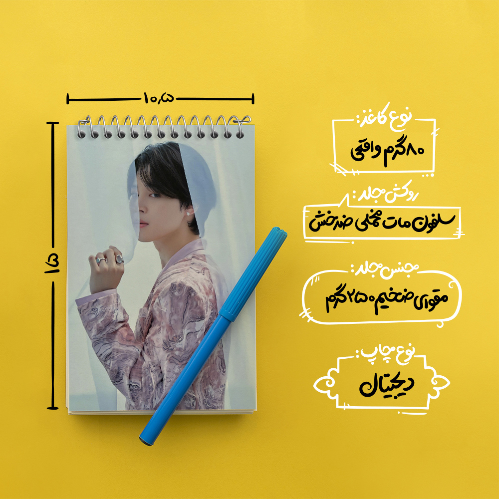 برند خندالو در زمینه تولید انواع دفاتر فانتزی و تحصیلی فعالیت میکند که به دلیل جذابیت ظاهری و طرح های متنوع طرفداران زیادی دارد. دفتر یادداشت خندالو طرح جیمین Jimin گروه بی تی اس BTS محصولی مناسب برای همه عاشقان لوازم التحریر است و همچنین همه کسانی که بنا به موقعیت تحصیل یا شغلشان با دفتر و نوشت افزار زیاد سر و کار دارند. در تولید دفتر یادداشت خندالو طرح جیمین Jimin گروه بی تی اس BTS از نوع صحافی فنر مارپیچ استفاده شده که در این نوع صحافی برگهها به راحتی چرخیده و یا بیرون آورده می شوند. دفتر های خندالو دارای جلد انعطاف پذیر از جنس مقوای گلاسه 250 گرم با روکش سلفون مات مخملی است که به شما امکان میدهد از دفتر خود بدون اینکه نگرانی از شکستن یا خراب شدن جلد را داشته باشید استفاده کنید و همچنین در این دفاتر از کاغذ 80 گرم با کیفیت استفاده شده که باعث میشود هنگام نوشتن به خوبی جوهر قلم بر روی صفحه نشسته و از خط خوردگیها جلوگیری کند. دفتر یادداشت خندالو با جنس و دوام مناسب، برگه های کاملاً سفید و خطوط طوسی دقیق را داراست که انسان را به نوشتن منظم و زیبا ترغیب میکند. طراحی کاملاً مناسب این دفاتر، به همراه کیفیت بالا، از آن یک محصول مورد علاقه و قابل اعتماد برای همه مقاطع تحصیلی میسازد. دفتر یادداشت خندالو طرح جیمین Jimin گروه بی تی اس BTS انتخابی هوشمندانه و مناسب برای افرادی است که به دنبال دفتری با کیفیت و کاربرد عالی هستند. این دفتر، همراه خوبی برای شما در تمام مراحل تحصیل و کار خواهد بود و تجربهای لذتبخش از نوشتن و آموختن را به شما هدیه میدهد.