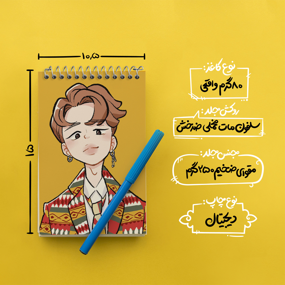 برند خندالو در زمینه تولید انواع دفاتر فانتزی و تحصیلی فعالیت میکند که به دلیل جذابیت ظاهری و طرح های متنوع طرفداران زیادی دارد. دفتر یادداشت خندالو طرح جیمین Jimin گروه بی تی اس BTS محصولی مناسب برای همه عاشقان لوازم التحریر است و همچنین همه کسانی که بنا به موقعیت تحصیل یا شغلشان با دفتر و نوشت افزار زیاد سر و کار دارند. در تولید دفتر یادداشت خندالو طرح جیمین Jimin گروه بی تی اس BTS از نوع صحافی فنر مارپیچ استفاده شده که در این نوع صحافی برگهها به راحتی چرخیده و یا بیرون آورده می شوند. دفتر های خندالو دارای جلد انعطاف پذیر از جنس مقوای گلاسه 250 گرم با روکش سلفون مات مخملی است که به شما امکان میدهد از دفتر خود بدون اینکه نگرانی از شکستن یا خراب شدن جلد را داشته باشید استفاده کنید و همچنین در این دفاتر از کاغذ 80 گرم با کیفیت استفاده شده که باعث میشود هنگام نوشتن به خوبی جوهر قلم بر روی صفحه نشسته و از خط خوردگیها جلوگیری کند. دفتر یادداشت خندالو با جنس و دوام مناسب، برگه های کاملاً سفید و خطوط طوسی دقیق را داراست که انسان را به نوشتن منظم و زیبا ترغیب میکند. طراحی کاملاً مناسب این دفاتر، به همراه کیفیت بالا، از آن یک محصول مورد علاقه و قابل اعتماد برای همه مقاطع تحصیلی میسازد. دفتر یادداشت خندالو طرح جیمین Jimin گروه بی تی اس BTS انتخابی هوشمندانه و مناسب برای افرادی است که به دنبال دفتری با کیفیت و کاربرد عالی هستند. این دفتر، همراه خوبی برای شما در تمام مراحل تحصیل و کار خواهد بود و تجربهای لذتبخش از نوشتن و آموختن را به شما هدیه میدهد.