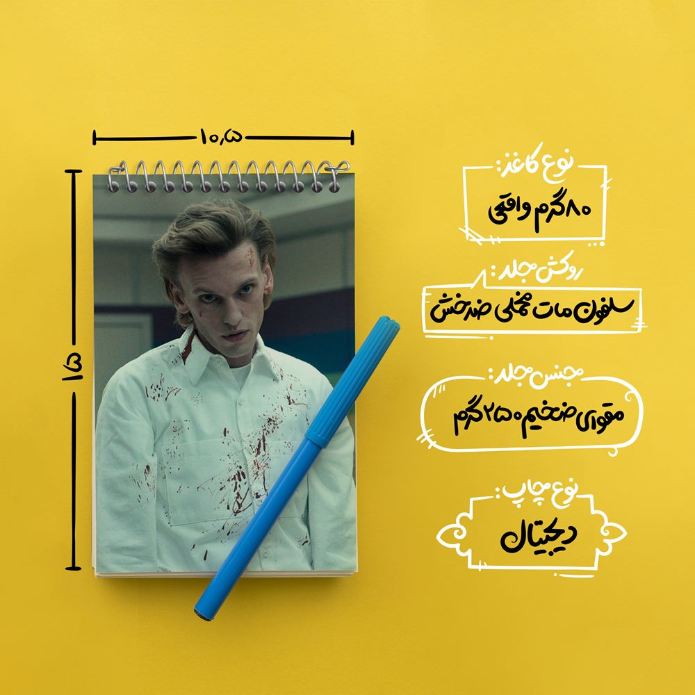 برند خندالو در زمینه تولید انواع دفاتر فانتزی و تحصیلی فعالیت میکند که به دلیل جذابیت ظاهری و طرح های متنوع طرفداران زیادی دارد. دفتر یادداشت خندالو طرح جیمی سریال استرنجر تینگز Stranger Things محصولی مناسب برای همه عاشقان لوازم التحریر است و همچنین همه کسانی که بنا به موقعیت تحصیل یا شغلشان با دفتر و نوشت افزار زیاد سر و کار دارند. در تولید دفتر یادداشت خندالو طرح جیمی سریال استرنجر تینگز Stranger Things از نوع صحافی فنر مارپیچ استفاده شده که در این نوع صحافی برگهها به راحتی چرخیده و یا بیرون آورده می شوند. دفتر های خندالو دارای جلد انعطاف پذیر از جنس مقوای گلاسه 250 گرم با روکش سلفون مات مخملی است که به شما امکان میدهد از دفتر خود بدون اینکه نگرانی از شکستن یا خراب شدن جلد را داشته باشید استفاده کنید و همچنین در این دفاتر از کاغذ 80 گرم با کیفیت استفاده شده که باعث میشود هنگام نوشتن به خوبی جوهر قلم بر روی صفحه نشسته و از خط خوردگیها جلوگیری کند. دفتر یادداشت خندالو با جنس و دوام مناسب، برگه های کاملاً سفید و خطوط طوسی دقیق را داراست که انسان را به نوشتن منظم و زیبا ترغیب میکند. طراحی کاملاً مناسب این دفاتر، به همراه کیفیت بالا، از آن یک محصول مورد علاقه و قابل اعتماد برای همه مقاطع تحصیلی میسازد. دفتر یادداشت خندالو طرح جیمی سریال استرنجر تینگز Stranger Things انتخابی هوشمندانه و مناسب برای افرادی است که به دنبال دفتری با کیفیت و کاربرد عالی هستند. این دفتر، همراه خوبی برای شما در تمام مراحل تحصیل و کار خواهد بود و تجربهای لذتبخش از نوشتن و آموختن را به شما هدیه میدهد.