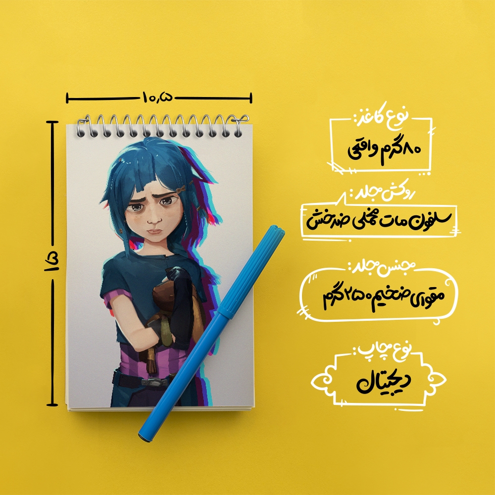 برند خندالو در زمینه تولید انواع دفاتر فانتزی و تحصیلی فعالیت میکند که به دلیل جذابیت ظاهری و طرح های متنوع طرفداران زیادی دارد. دفتر یادداشت خندالو طرح جینکس آرکین (Arcane) محصولی مناسب برای همه عاشقان لوازم التحریر است و همچنین همه کسانی که بنا به موقعیت تحصیل یا شغلشان با دفتر و نوشت افزار زیاد سر و کار دارند. در تولید دفتر یادداشت خندالو طرح جینکس آرکین (Arcane) از نوع صحافی فنر مارپیچ استفاده شده که در این نوع صحافی برگهها به راحتی چرخیده و یا بیرون آورده می شوند. دفتر های خندالو دارای جلد انعطاف پذیر از جنس مقوای گلاسه 250 گرم با روکش سلفون مات مخملی است که به شما امکان میدهد از دفتر خود بدون اینکه نگرانی از شکستن یا خراب شدن جلد را داشته باشید استفاده کنید و همچنین در این دفاتر از کاغذ 80 گرم با کیفیت استفاده شده که باعث میشود هنگام نوشتن به خوبی جوهر قلم بر روی صفحه نشسته و از خط خوردگیها جلوگیری کند. دفتر یادداشت خندالو با جنس و دوام مناسب، برگه های کاملاً سفید و خطوط طوسی دقیق را داراست که انسان را به نوشتن منظم و زیبا ترغیب میکند. طراحی کاملاً مناسب این دفاتر، به همراه کیفیت بالا، از آن یک محصول مورد علاقه و قابل اعتماد برای همه مقاطع تحصیلی میسازد. دفتر یادداشت خندالو طرح جینکس آرکین (Arcane) انتخابی هوشمندانه و مناسب برای افرادی است که به دنبال دفتری با کیفیت و کاربرد عالی هستند. این دفتر، همراه خوبی برای شما در تمام مراحل تحصیل و کار خواهد بود و تجربهای لذتبخش از نوشتن و آموختن را به شما هدیه میدهد.