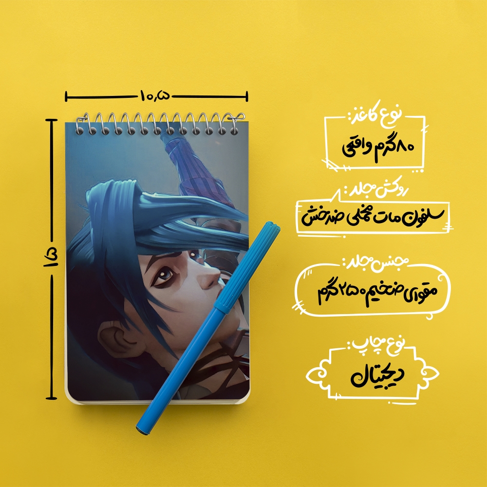 برند خندالو در زمینه تولید انواع دفاتر فانتزی و تحصیلی فعالیت میکند که به دلیل جذابیت ظاهری و طرح های متنوع طرفداران زیادی دارد. دفتر یادداشت خندالو طرح جینکس آرکین (Arcane) محصولی مناسب برای همه عاشقان لوازم التحریر است و همچنین همه کسانی که بنا به موقعیت تحصیل یا شغلشان با دفتر و نوشت افزار زیاد سر و کار دارند. در تولید دفتر یادداشت خندالو طرح جینکس آرکین (Arcane) از نوع صحافی فنر مارپیچ استفاده شده که در این نوع صحافی برگهها به راحتی چرخیده و یا بیرون آورده می شوند. دفتر های خندالو دارای جلد انعطاف پذیر از جنس مقوای گلاسه 250 گرم با روکش سلفون مات مخملی است که به شما امکان میدهد از دفتر خود بدون اینکه نگرانی از شکستن یا خراب شدن جلد را داشته باشید استفاده کنید و همچنین در این دفاتر از کاغذ 80 گرم با کیفیت استفاده شده که باعث میشود هنگام نوشتن به خوبی جوهر قلم بر روی صفحه نشسته و از خط خوردگیها جلوگیری کند. دفتر یادداشت خندالو با جنس و دوام مناسب، برگه های کاملاً سفید و خطوط طوسی دقیق را داراست که انسان را به نوشتن منظم و زیبا ترغیب میکند. طراحی کاملاً مناسب این دفاتر، به همراه کیفیت بالا، از آن یک محصول مورد علاقه و قابل اعتماد برای همه مقاطع تحصیلی میسازد. دفتر یادداشت خندالو طرح جینکس آرکین (Arcane) انتخابی هوشمندانه و مناسب برای افرادی است که به دنبال دفتری با کیفیت و کاربرد عالی هستند. این دفتر، همراه خوبی برای شما در تمام مراحل تحصیل و کار خواهد بود و تجربهای لذتبخش از نوشتن و آموختن را به شما هدیه میدهد.