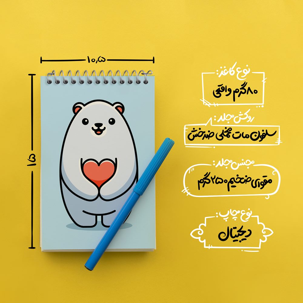 برند خندالو در زمینه تولید انواع دفاتر فانتزی و تحصیلی فعالیت میکند که به دلیل جذابیت ظاهری و طرح های متنوع طرفداران زیادی دارد. دفتر یادداشت خندالو طرح حیوانات بامزه خرس قطبی محصولی مناسب برای همه عاشقان لوازم التحریر است و همچنین همه کسانی که بنا به موقعیت تحصیل یا شغلشان با دفتر و نوشت افزار زیاد سر و کار دارند. در تولید دفتر یادداشت خندالو طرح حیوانات بامزه خرس قطبی از نوع صحافی فنر مارپیچ استفاده شده که در این نوع صحافی برگهها به راحتی چرخیده و یا بیرون آورده می شوند. دفتر های خندالو دارای جلد انعطاف پذیر از جنس مقوای گلاسه 250 گرم با روکش سلفون مات مخملی است که به شما امکان میدهد از دفتر خود بدون اینکه نگرانی از شکستن یا خراب شدن جلد را داشته باشید استفاده کنید و همچنین در این دفاتر از کاغذ 80 گرم با کیفیت استفاده شده که باعث میشود هنگام نوشتن به خوبی جوهر قلم بر روی صفحه نشسته و از خط خوردگیها جلوگیری کند. دفتر یادداشت خندالو با جنس و دوام مناسب، برگه های کاملاً سفید و خطوط طوسی دقیق را داراست که انسان را به نوشتن منظم و زیبا ترغیب میکند. طراحی کاملاً مناسب این دفاتر، به همراه کیفیت بالا، از آن یک محصول مورد علاقه و قابل اعتماد برای همه مقاطع تحصیلی میسازد. دفتر یادداشت خندالو طرح حیوانات بامزه خرس قطبی انتخابی هوشمندانه و مناسب برای افرادی است که به دنبال دفتری با کیفیت و کاربرد عالی هستند. این دفتر، همراه خوبی برای شما در تمام مراحل تحصیل و کار خواهد بود و تجربهای لذتبخش از نوشتن و آموختن را به شما هدیه میدهد.