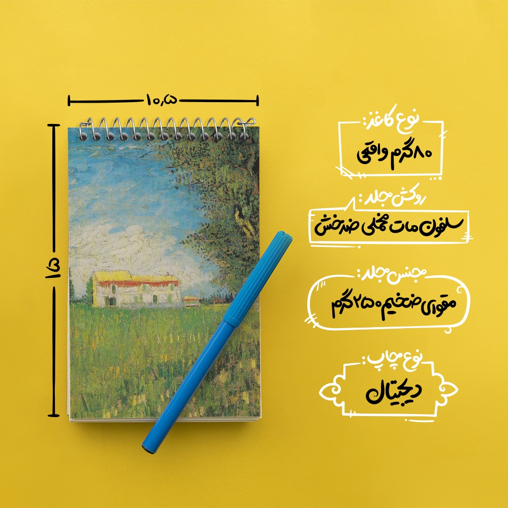 برند خندالو در زمینه تولید انواع دفاتر فانتزی و تحصیلی فعالیت میکند که به دلیل جذابیت ظاهری و طرح های متنوع طرفداران زیادی دارد. دفتر یادداشت خندالو طرح خانه در مزرعه گندم ونسان ونگوگ (Van Gogh) محصولی مناسب برای همه عاشقان لوازم التحریر است و همچنین همه کسانی که بنا به موقعیت تحصیل یا شغلشان با دفتر و نوشت افزار زیاد سر و کار دارند. در تولید دفتر یادداشت خندالو طرح خانه در مزرعه گندم ونسان ونگوگ (Van Gogh) از نوع صحافی فنر مارپیچ استفاده شده که در این نوع صحافی برگهها به راحتی چرخیده و یا بیرون آورده می شوند. دفتر های خندالو دارای جلد انعطاف پذیر از جنس مقوای گلاسه 250 گرم با روکش سلفون مات مخملی است که به شما امکان میدهد از دفتر خود بدون اینکه نگرانی از شکستن یا خراب شدن جلد را داشته باشید استفاده کنید و همچنین در این دفاتر از کاغذ 80 گرم با کیفیت استفاده شده که باعث میشود هنگام نوشتن به خوبی جوهر قلم بر روی صفحه نشسته و از خط خوردگیها جلوگیری کند. دفتر یادداشت خندالو با جنس و دوام مناسب، برگه های کاملاً سفید و خطوط طوسی دقیق را داراست که انسان را به نوشتن منظم و زیبا ترغیب میکند. طراحی کاملاً مناسب این دفاتر، به همراه کیفیت بالا، از آن یک محصول مورد علاقه و قابل اعتماد برای همه مقاطع تحصیلی میسازد. دفتر یادداشت خندالو طرح خانه در مزرعه گندم ونسان ونگوگ (Van Gogh) انتخابی هوشمندانه و مناسب برای افرادی است که به دنبال دفتری با کیفیت و کاربرد عالی هستند. این دفتر، همراه خوبی برای شما در تمام مراحل تحصیل و کار خواهد بود و تجربهای لذتبخش از نوشتن و آموختن را به شما هدیه میدهد.