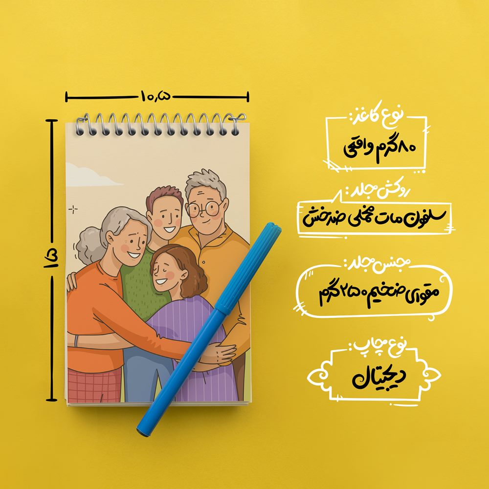 برند خندالو در زمینه تولید انواع دفاتر فانتزی و تحصیلی فعالیت میکند که به دلیل جذابیت ظاهری و طرح های متنوع طرفداران زیادی دارد. دفتر یادداشت خندالو طرح خانواده شاد محصولی مناسب برای همه عاشقان لوازم التحریر است و همچنین همه کسانی که بنا به موقعیت تحصیل یا شغلشان با دفتر و نوشت افزار زیاد سر و کار دارند. در تولید دفتر یادداشت خندالو طرح خانواده شاد از نوع صحافی فنر مارپیچ استفاده شده که در این نوع صحافی برگهها به راحتی چرخیده و یا بیرون آورده می شوند. دفتر های خندالو دارای جلد انعطاف پذیر از جنس مقوای گلاسه 250 گرم با روکش سلفون مات مخملی است که به شما امکان میدهد از دفتر خود بدون اینکه نگرانی از شکستن یا خراب شدن جلد را داشته باشید استفاده کنید و همچنین در این دفاتر از کاغذ 80 گرم با کیفیت استفاده شده که باعث میشود هنگام نوشتن به خوبی جوهر قلم بر روی صفحه نشسته و از خط خوردگیها جلوگیری کند. دفتر یادداشت خندالو با جنس و دوام مناسب، برگه های کاملاً سفید و خطوط طوسی دقیق را داراست که انسان را به نوشتن منظم و زیبا ترغیب میکند. طراحی کاملاً مناسب این دفاتر، به همراه کیفیت بالا، از آن یک محصول مورد علاقه و قابل اعتماد برای همه مقاطع تحصیلی میسازد. دفتر یادداشت خندالو طرح خانواده شاد انتخابی هوشمندانه و مناسب برای افرادی است که به دنبال دفتری با کیفیت و کاربرد عالی هستند. این دفتر، همراه خوبی برای شما در تمام مراحل تحصیل و کار خواهد بود و تجربهای لذتبخش از نوشتن و آموختن را به شما هدیه میدهد.