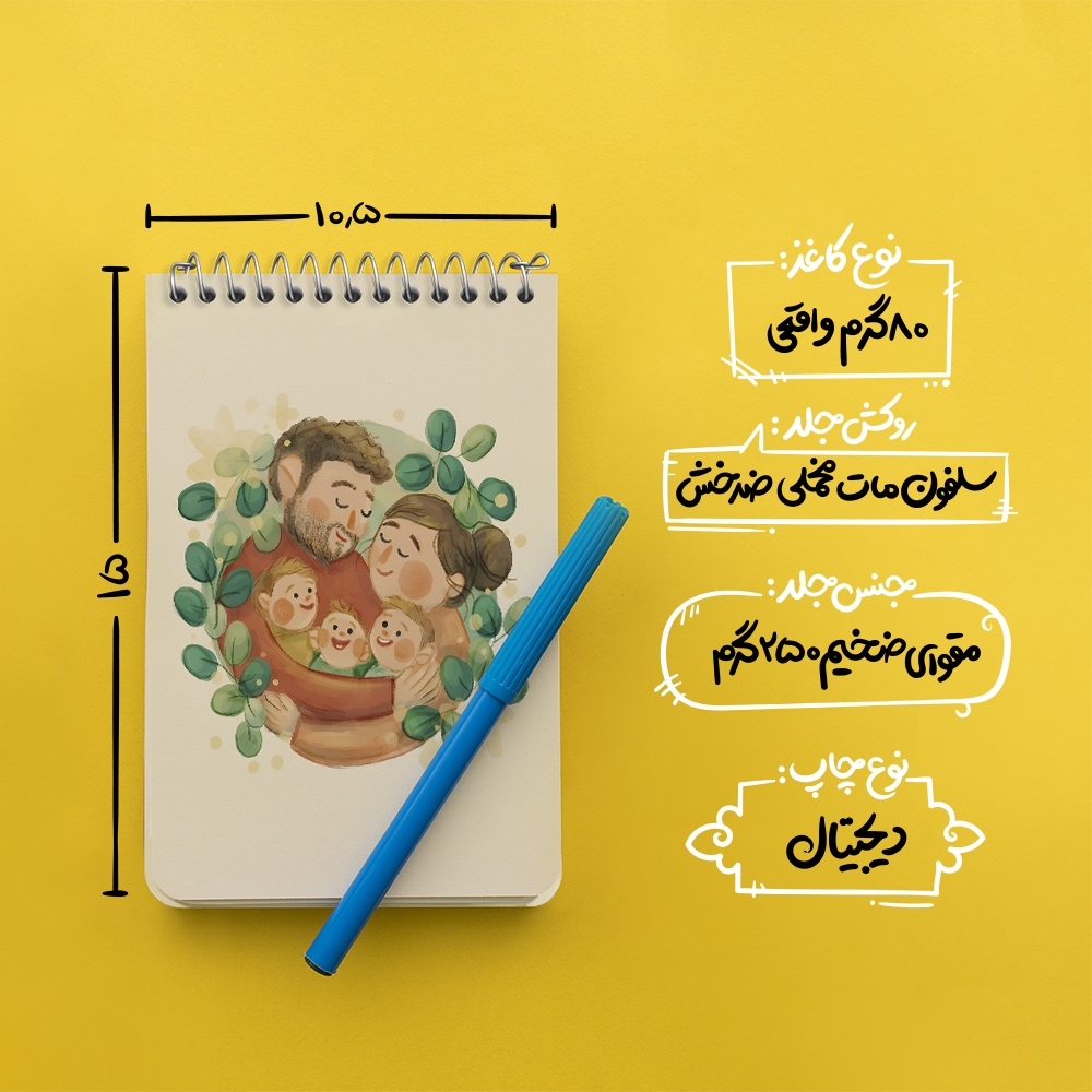 برند خندالو در زمینه تولید انواع دفاتر فانتزی و تحصیلی فعالیت میکند که به دلیل جذابیت ظاهری و طرح های متنوع طرفداران زیادی دارد. دفتر یادداشت خندالو طرح خانواده شاد محصولی مناسب برای همه عاشقان لوازم التحریر است و همچنین همه کسانی که بنا به موقعیت تحصیل یا شغلشان با دفتر و نوشت افزار زیاد سر و کار دارند. در تولید دفتر یادداشت خندالو طرح خانواده شاد از نوع صحافی فنر مارپیچ استفاده شده که در این نوع صحافی برگهها به راحتی چرخیده و یا بیرون آورده می شوند. دفتر های خندالو دارای جلد انعطاف پذیر از جنس مقوای گلاسه 250 گرم با روکش سلفون مات مخملی است که به شما امکان میدهد از دفتر خود بدون اینکه نگرانی از شکستن یا خراب شدن جلد را داشته باشید استفاده کنید و همچنین در این دفاتر از کاغذ 80 گرم با کیفیت استفاده شده که باعث میشود هنگام نوشتن به خوبی جوهر قلم بر روی صفحه نشسته و از خط خوردگیها جلوگیری کند. دفتر یادداشت خندالو با جنس و دوام مناسب، برگه های کاملاً سفید و خطوط طوسی دقیق را داراست که انسان را به نوشتن منظم و زیبا ترغیب میکند. طراحی کاملاً مناسب این دفاتر، به همراه کیفیت بالا، از آن یک محصول مورد علاقه و قابل اعتماد برای همه مقاطع تحصیلی میسازد. دفتر یادداشت خندالو طرح خانواده شاد انتخابی هوشمندانه و مناسب برای افرادی است که به دنبال دفتری با کیفیت و کاربرد عالی هستند. این دفتر، همراه خوبی برای شما در تمام مراحل تحصیل و کار خواهد بود و تجربهای لذتبخش از نوشتن و آموختن را به شما هدیه میدهد.