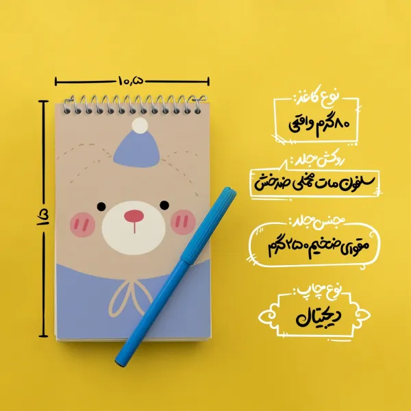 برند خندالو در زمینه تولید انواع دفاتر فانتزی و تحصیلی فعالیت میکند که به دلیل جذابیت ظاهری و طرح های متنوع طرفداران زیادی دارد. دفتر یادداشت خندالو طرح خرس بامزه محصولی مناسب برای همه عاشقان لوازم التحریر است و همچنین همه کسانی که بنا به موقعیت تحصیل یا شغلشان با دفتر و نوشت افزار زیاد سر و کار دارند. در تولید دفتر یادداشت خندالو طرح خرس بامزه از نوع صحافی فنر مارپیچ استفاده شده که در این نوع صحافی برگه‌ها به راحتی چرخیده و یا بیرون آورده می شوند.