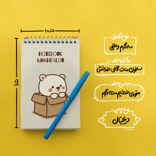 برند خندالو در زمینه تولید انواع دفاتر فانتزی و تحصیلی فعالیت میکند که به دلیل جذابیت ظاهری و طرح های متنوع طرفداران زیادی دارد. دفتر یادداشت خندالو طرح خرس بامزه محصولی مناسب برای همه عاشقان لوازم التحریر است و همچنین همه کسانی که بنا به موقعیت تحصیل یا شغلشان با دفتر و نوشت افزار زیاد سر و کار دارند. در تولید دفتر یادداشت خندالو طرح خرس بامزه از نوع صحافی فنر مارپیچ استفاده شده که در این نوع صحافی برگه‌ها به راحتی چرخیده و یا بیرون آورده می شوند.