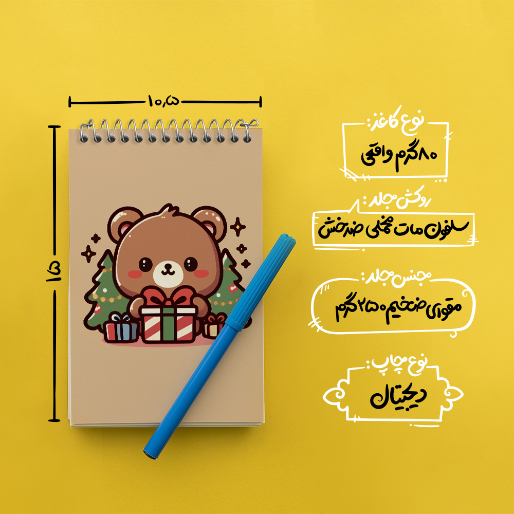 برند خندالو در زمینه تولید انواع دفاتر فانتزی و تحصیلی فعالیت میکند که به دلیل جذابیت ظاهری و طرح های متنوع طرفداران زیادی دارد. دفتر یادداشت خندالو طرح خرس و هدیه ی کریسمس محصولی مناسب برای همه عاشقان لوازم التحریر است و همچنین همه کسانی که بنا به موقعیت تحصیل یا شغلشان با دفتر و نوشت افزار زیاد سر و کار دارند. در تولید دفتر یادداشت خندالو طرح خرس و هدیه ی کریسمس از نوع صحافی فنر مارپیچ استفاده شده که در این نوع صحافی برگهها به راحتی چرخیده و یا بیرون آورده می شوند. دفتر های خندالو دارای جلد انعطاف پذیر از جنس مقوای گلاسه 250 گرم با روکش سلفون مات مخملی است که به شما امکان میدهد از دفتر خود بدون اینکه نگرانی از شکستن یا خراب شدن جلد را داشته باشید استفاده کنید و همچنین در این دفاتر از کاغذ 80 گرم با کیفیت استفاده شده که باعث میشود هنگام نوشتن به خوبی جوهر قلم بر روی صفحه نشسته و از خط خوردگیها جلوگیری کند. دفتر یادداشت خندالو با جنس و دوام مناسب، برگه های کاملاً سفید و خطوط طوسی دقیق را داراست که انسان را به نوشتن منظم و زیبا ترغیب میکند. طراحی کاملاً مناسب این دفاتر، به همراه کیفیت بالا، از آن یک محصول مورد علاقه و قابل اعتماد برای همه مقاطع تحصیلی میسازد. دفتر یادداشت خندالو طرح خرس و هدیه ی کریسمس انتخابی هوشمندانه و مناسب برای افرادی است که به دنبال دفتری با کیفیت و کاربرد عالی هستند. این دفتر، همراه خوبی برای شما در تمام مراحل تحصیل و کار خواهد بود و تجربهای لذتبخش از نوشتن و آموختن را به شما هدیه میدهد.