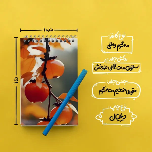 برند خندالو در زمینه تولید انواع دفاتر فانتزی و تحصیلی فعالیت میکند که به دلیل جذابیت ظاهری و طرح های متنوع طرفداران زیادی دارد. دفتر یادداشت خندالو طرح خرمالو محصولی مناسب برای همه عاشقان لوازم التحریر است و همچنین همه کسانی که بنا به موقعیت تحصیل یا شغلشان با دفتر و نوشت افزار زیاد سر و کار دارند. در تولید دفتر یادداشت خندالو طرح خرمالو از نوع صحافی فنر مارپیچ استفاده شده که در این نوع صحافی برگهها به راحتی چرخیده و یا بیرون آورده می شوند. دفتر های خندالو دارای جلد انعطاف پذیر از جنس مقوای گلاسه 250 گرم با روکش سلفون مات مخملی است که به شما امکان میدهد از دفتر خود بدون اینکه نگرانی از شکستن یا خراب شدن جلد را داشته باشید استفاده کنید و همچنین در این دفاتر از کاغذ 80 گرم با کیفیت استفاده شده که باعث میشود هنگام نوشتن به خوبی جوهر قلم بر روی صفحه نشسته و از خط خوردگیها جلوگیری کند. دفتر یادداشت خندالو با جنس و دوام مناسب، برگه های کاملاً سفید و خطوط طوسی دقیق را داراست که انسان را به نوشتن منظم و زیبا ترغیب میکند. طراحی کاملاً مناسب این دفاتر، به همراه کیفیت بالا، از آن یک محصول مورد علاقه و قابل اعتماد برای همه مقاطع تحصیلی میسازد. دفتر یادداشت خندالو طرح خرمالو انتخابی هوشمندانه و مناسب برای افرادی است که به دنبال دفتری با کیفیت و کاربرد عالی هستند. این دفتر، همراه خوبی برای شما در تمام مراحل تحصیل و کار خواهد بود و تجربهای لذتبخش از نوشتن و آموختن را به شما هدیه میدهد.