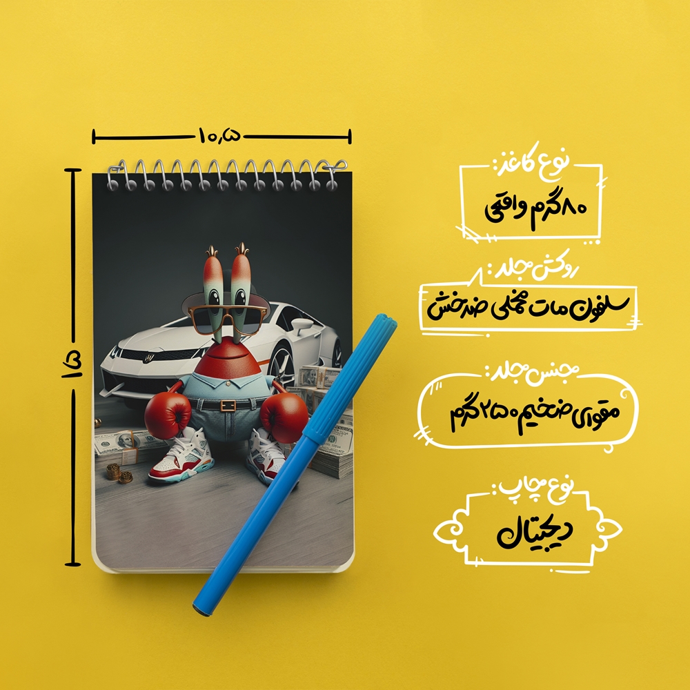 برند خندالو در زمینه تولید انواع دفاتر فانتزی و تحصیلی فعالیت میکند که به دلیل جذابیت ظاهری و طرح های متنوع طرفداران زیادی دارد. دفتر یادداشت خندالو طرح خرچنگ باب اسفنجی محصولی مناسب برای همه عاشقان لوازم التحریر است و همچنین همه کسانی که بنا به موقعیت تحصیل یا شغلشان با دفتر و نوشت افزار زیاد سر و کار دارند. در تولید دفتر یادداشت خندالو طرح خرچنگ باب اسفنجی از نوع صحافی فنر مارپیچ استفاده شده که در این نوع صحافی برگه‌ها به راحتی چرخیده و یا بیرون آورده می شوند.