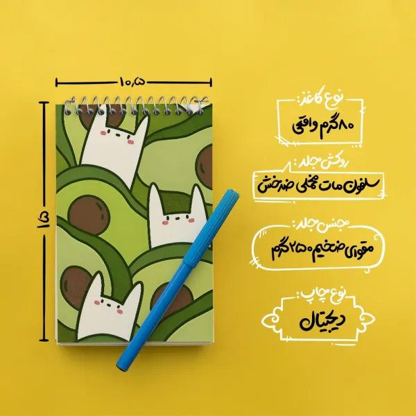 برند خندالو در زمینه تولید انواع دفاتر فانتزی و تحصیلی فعالیت میکند که به دلیل جذابیت ظاهری و طرح های متنوع طرفداران زیادی دارد. دفتر یادداشت خندالو طرح خرگوش و آووکادو محصولی مناسب برای همه عاشقان لوازم التحریر است و همچنین همه کسانی که بنا به موقعیت تحصیل یا شغلشان با دفتر و نوشت افزار زیاد سر و کار دارند. در تولید دفتر یادداشت خندالو طرح خرگوش و آووکادو از نوع صحافی فنر مارپیچ استفاده شده که در این نوع صحافی برگهها به راحتی چرخیده و یا بیرون آورده می شوند. دفتر های خندالو دارای جلد انعطاف پذیر از جنس مقوای گلاسه 250 گرم با روکش سلفون مات مخملی است که به شما امکان میدهد از دفتر خود بدون اینکه نگرانی از شکستن یا خراب شدن جلد را داشته باشید استفاده کنید و همچنین در این دفاتر از کاغذ 80 گرم با کیفیت استفاده شده که باعث میشود هنگام نوشتن به خوبی جوهر قلم بر روی صفحه نشسته و از خط خوردگیها جلوگیری کند. دفتر یادداشت خندالو با جنس و دوام مناسب، برگه های کاملاً سفید و خطوط طوسی دقیق را داراست که انسان را به نوشتن منظم و زیبا ترغیب میکند. طراحی کاملاً مناسب این دفاتر، به همراه کیفیت بالا، از آن یک محصول مورد علاقه و قابل اعتماد برای همه مقاطع تحصیلی میسازد. دفتر یادداشت خندالو طرح خرگوش و آووکادو انتخابی هوشمندانه و مناسب برای افرادی است که به دنبال دفتری با کیفیت و کاربرد عالی هستند. این دفتر، همراه خوبی برای شما در تمام مراحل تحصیل و کار خواهد بود و تجربهای لذتبخش از نوشتن و آموختن را به شما هدیه میدهد.