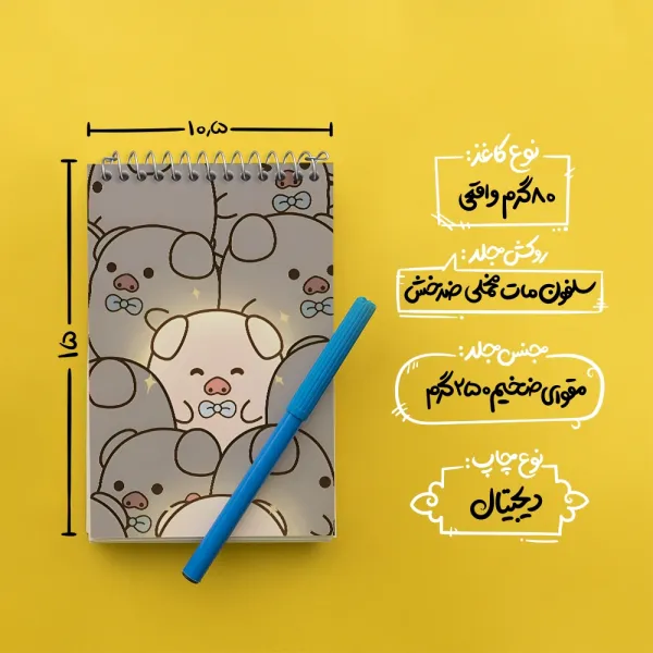 برند خندالو در زمینه تولید انواع دفاتر فانتزی و تحصیلی فعالیت میکند که به دلیل جذابیت ظاهری و طرح های متنوع طرفداران زیادی دارد. دفتر یادداشت خندالو طرح خوک بامزه محصولی مناسب برای همه عاشقان لوازم التحریر است و همچنین همه کسانی که بنا به موقعیت تحصیل یا شغلشان با دفتر و نوشت افزار زیاد سر و کار دارند. در تولید دفتر یادداشت خندالو طرح خوک بامزه از نوع صحافی فنر مارپیچ استفاده شده که در این نوع صحافی برگه‌ها به راحتی چرخیده و یا بیرون آورده می شوند.