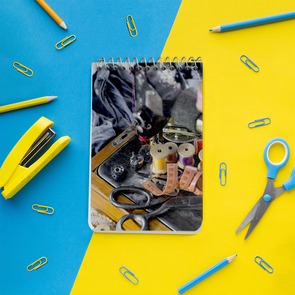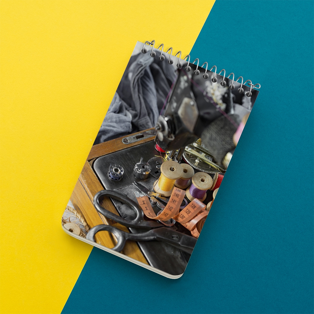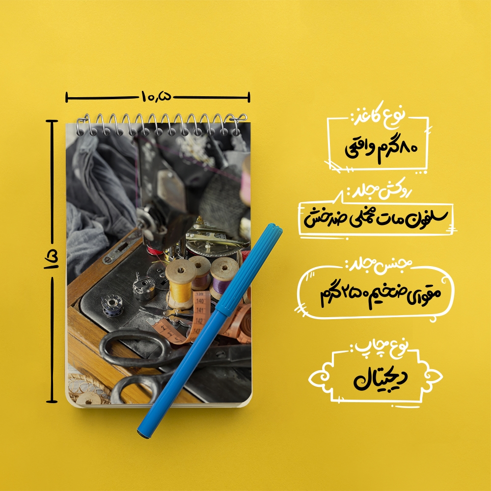 دفتر یادداشت خیاطی و چرخ خیاطی