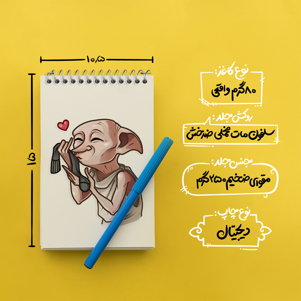 برند خندالو در زمینه تولید انواع دفاتر فانتزی و تحصیلی فعالیت میکند که به دلیل جذابیت ظاهری و طرح های متنوع طرفداران زیادی دارد. دفتر یادداشت خندالو طرح دابی هری پاتر (Harry Potter) محصولی مناسب برای همه عاشقان لوازم التحریر است و همچنین همه کسانی که بنا به موقعیت تحصیل یا شغلشان با دفتر و نوشت افزار زیاد سر و کار دارند. در تولید دفتر یادداشت خندالو طرح دابی هری پاتر (Harry Potter) از نوع صحافی فنر مارپیچ استفاده شده که در این نوع صحافی برگهها به راحتی چرخیده و یا بیرون آورده می شوند. دفتر های خندالو دارای جلد انعطاف پذیر از جنس مقوای گلاسه 250 گرم با روکش سلفون مات مخملی است که به شما امکان میدهد از دفتر خود بدون اینکه نگرانی از شکستن یا خراب شدن جلد را داشته باشید استفاده کنید و همچنین در این دفاتر از کاغذ 80 گرم با کیفیت استفاده شده که باعث میشود هنگام نوشتن به خوبی جوهر قلم بر روی صفحه نشسته و از خط خوردگیها جلوگیری کند. دفتر یادداشت خندالو با جنس و دوام مناسب، برگه های کاملاً سفید و خطوط طوسی دقیق را داراست که انسان را به نوشتن منظم و زیبا ترغیب میکند. طراحی کاملاً مناسب این دفاتر، به همراه کیفیت بالا، از آن یک محصول مورد علاقه و قابل اعتماد برای همه مقاطع تحصیلی میسازد. دفتر یادداشت خندالو طرح دابی هری پاتر (Harry Potter) انتخابی هوشمندانه و مناسب برای افرادی است که به دنبال دفتری با کیفیت و کاربرد عالی هستند. این دفتر، همراه خوبی برای شما در تمام مراحل تحصیل و کار خواهد بود و تجربهای لذتبخش از نوشتن و آموختن را به شما هدیه میدهد.
