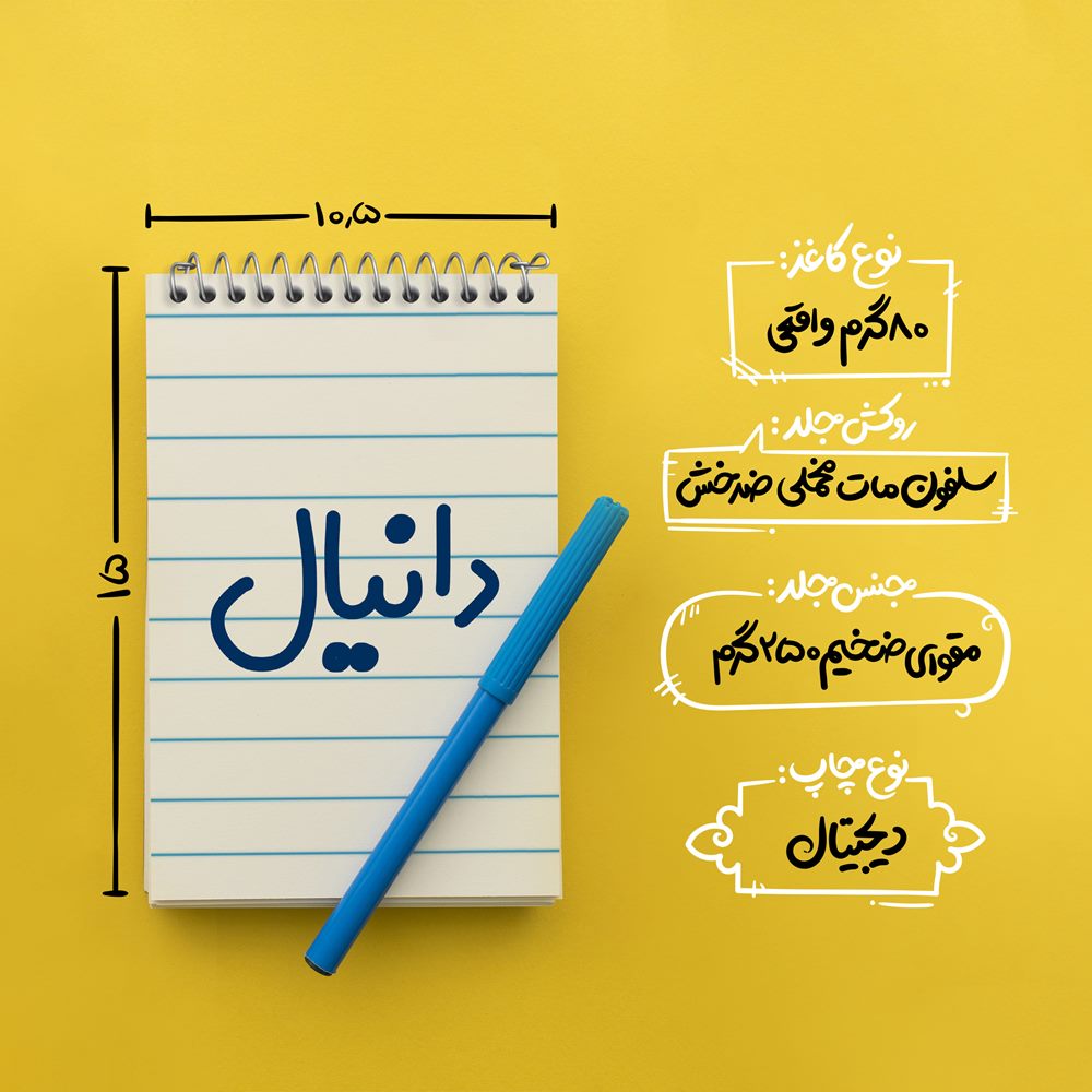 برند خندالو در زمینه تولید انواع دفاتر فانتزی و تحصیلی فعالیت میکند که به دلیل جذابیت ظاهری و طرح های متنوع طرفداران زیادی دارد. دفتر یادداشت خندالو طرح دانیال محصولی مناسب برای همه عاشقان لوازم التحریر است و همچنین همه کسانی که بنا به موقعیت تحصیل یا شغلشان با دفتر و نوشت افزار زیاد سر و کار دارند. در تولید دفتر یادداشت خندالو طرح دانیال از نوع صحافی فنر مارپیچ استفاده شده که در این نوع صحافی برگهها به راحتی چرخیده و یا بیرون آورده می شوند. دفتر های خندالو دارای جلد انعطاف پذیر از جنس مقوای گلاسه 250 گرم با روکش سلفون مات مخملی است که به شما امکان میدهد از دفتر خود بدون اینکه نگرانی از شکستن یا خراب شدن جلد را داشته باشید استفاده کنید و همچنین در این دفاتر از کاغذ 80 گرم با کیفیت استفاده شده که باعث میشود هنگام نوشتن به خوبی جوهر قلم بر روی صفحه نشسته و از خط خوردگیها جلوگیری کند. دفتر یادداشت خندالو با جنس و دوام مناسب، برگه های کاملاً سفید و خطوط طوسی دقیق را داراست که انسان را به نوشتن منظم و زیبا ترغیب میکند. طراحی کاملاً مناسب این دفاتر، به همراه کیفیت بالا، از آن یک محصول مورد علاقه و قابل اعتماد برای همه مقاطع تحصیلی میسازد. دفتر یادداشت خندالو طرح دانیال انتخابی هوشمندانه و مناسب برای افرادی است که به دنبال دفتری با کیفیت و کاربرد عالی هستند. این دفتر، همراه خوبی برای شما در تمام مراحل تحصیل و کار خواهد بود و تجربهای لذتبخش از نوشتن و آموختن را به شما هدیه میدهد.