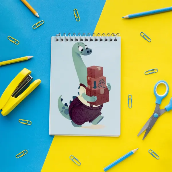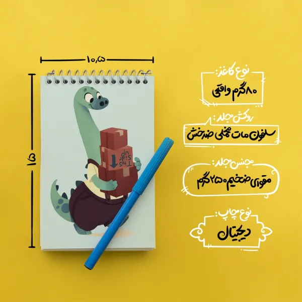 برند خندالو در زمینه تولید انواع دفاتر فانتزی و تحصیلی فعالیت میکند که به دلیل جذابیت ظاهری و طرح های متنوع طرفداران زیادی دارد. دفتر یادداشت خندالو طرح دایناسور بامزه محصولی مناسب برای همه عاشقان لوازم التحریر است و همچنین همه کسانی که بنا به موقعیت تحصیل یا شغلشان با دفتر و نوشت افزار زیاد سر و کار دارند. در تولید دفتر یادداشت خندالو طرح دایناسور بامزه از نوع صحافی فنر مارپیچ استفاده شده که در این نوع صحافی برگه‌ها به راحتی چرخیده و یا بیرون آورده می شوند.