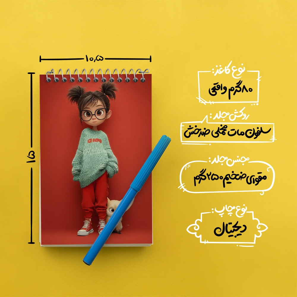 برند خندالو در زمینه تولید انواع دفاتر فانتزی و تحصیلی فعالیت میکند که به دلیل جذابیت ظاهری و طرح های متنوع طرفداران زیادی دارد. دفتر یادداشت خندالو طرح دخترانه بامزه محصولی مناسب برای همه عاشقان لوازم التحریر است و همچنین همه کسانی که بنا به موقعیت تحصیل یا شغلشان با دفتر و نوشت افزار زیاد سر و کار دارند. در تولید دفتر یادداشت خندالو طرح دخترانه بامزه از نوع صحافی فنر مارپیچ استفاده شده که در این نوع صحافی برگهها به راحتی چرخیده و یا بیرون آورده می شوند. دفتر های خندالو دارای جلد انعطاف پذیر از جنس مقوای گلاسه 250 گرم با روکش سلفون مات مخملی است که به شما امکان میدهد از دفتر خود بدون اینکه نگرانی از شکستن یا خراب شدن جلد را داشته باشید استفاده کنید و همچنین در این دفاتر از کاغذ 80 گرم با کیفیت استفاده شده که باعث میشود هنگام نوشتن به خوبی جوهر قلم بر روی صفحه نشسته و از خط خوردگیها جلوگیری کند. دفتر یادداشت خندالو با جنس و دوام مناسب، برگه های کاملاً سفید و خطوط طوسی دقیق را داراست که انسان را به نوشتن منظم و زیبا ترغیب میکند. طراحی کاملاً مناسب این دفاتر، به همراه کیفیت بالا، از آن یک محصول مورد علاقه و قابل اعتماد برای همه مقاطع تحصیلی میسازد. دفتر یادداشت خندالو طرح دخترانه بامزه انتخابی هوشمندانه و مناسب برای افرادی است که به دنبال دفتری با کیفیت و کاربرد عالی هستند. این دفتر، همراه خوبی برای شما در تمام مراحل تحصیل و کار خواهد بود و تجربهای لذتبخش از نوشتن و آموختن را به شما هدیه میدهد.