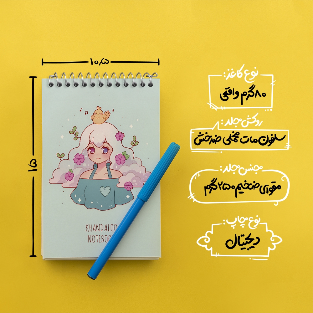 برند خندالو در زمینه تولید انواع دفاتر فانتزی و تحصیلی فعالیت میکند که به دلیل جذابیت ظاهری و طرح های متنوع طرفداران زیادی دارد. دفتر یادداشت خندالو طرح دخترانه فانتزی محصولی مناسب برای همه عاشقان لوازم التحریر است و همچنین همه کسانی که بنا به موقعیت تحصیل یا شغلشان با دفتر و نوشت افزار زیاد سر و کار دارند. در تولید دفتر یادداشت خندالو طرح دخترانه فانتزی از نوع صحافی فنر مارپیچ استفاده شده که در این نوع صحافی برگه‌ها به راحتی چرخیده و یا بیرون آورده می شوند.