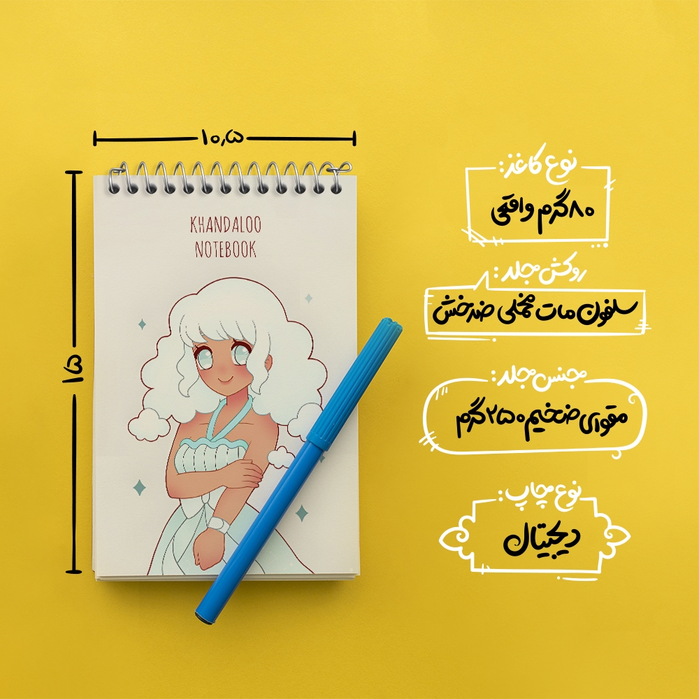 برند خندالو در زمینه تولید انواع دفاتر فانتزی و تحصیلی فعالیت میکند که به دلیل جذابیت ظاهری و طرح های متنوع طرفداران زیادی دارد. دفتر یادداشت خندالو طرح دخترانه فانتزی محصولی مناسب برای همه عاشقان لوازم التحریر است و همچنین همه کسانی که بنا به موقعیت تحصیل یا شغلشان با دفتر و نوشت افزار زیاد سر و کار دارند. در تولید دفتر یادداشت خندالو طرح دخترانه فانتزی از نوع صحافی فنر مارپیچ استفاده شده که در این نوع صحافی برگه‌ها به راحتی چرخیده و یا بیرون آورده می شوند.