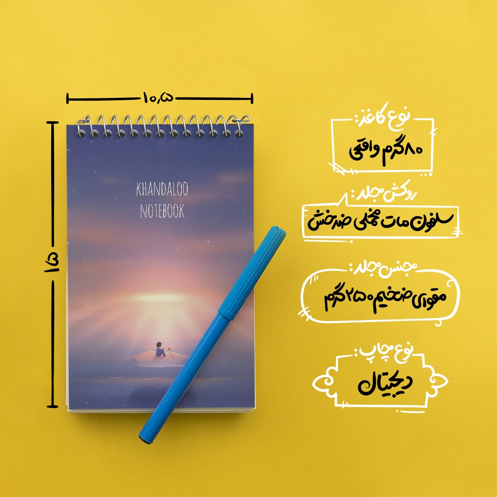 برند خندالو در زمینه تولید انواع دفاتر فانتزی و تحصیلی فعالیت میکند که به دلیل جذابیت ظاهری و طرح های متنوع طرفداران زیادی دارد. دفتر یادداشت خندالو طرح دخترانه فضایی محصولی مناسب برای همه عاشقان لوازم التحریر است و همچنین همه کسانی که بنا به موقعیت تحصیل یا شغلشان با دفتر و نوشت افزار زیاد سر و کار دارند. در تولید دفتر یادداشت خندالو طرح دخترانه فضایی از نوع صحافی فنر مارپیچ استفاده شده که در این نوع صحافی برگهها به راحتی چرخیده و یا بیرون آورده می شوند. دفتر های خندالو دارای جلد انعطاف پذیر از جنس مقوای گلاسه 250 گرم با روکش سلفون مات مخملی است که به شما امکان میدهد از دفتر خود بدون اینکه نگرانی از شکستن یا خراب شدن جلد را داشته باشید استفاده کنید و همچنین در این دفاتر از کاغذ 80 گرم با کیفیت استفاده شده که باعث میشود هنگام نوشتن به خوبی جوهر قلم بر روی صفحه نشسته و از خط خوردگیها جلوگیری کند. دفتر یادداشت خندالو با جنس و دوام مناسب، برگه های کاملاً سفید و خطوط طوسی دقیق را داراست که انسان را به نوشتن منظم و زیبا ترغیب میکند. طراحی کاملاً مناسب این دفاتر، به همراه کیفیت بالا، از آن یک محصول مورد علاقه و قابل اعتماد برای همه مقاطع تحصیلی میسازد. دفتر یادداشت خندالو طرح دخترانه فضایی انتخابی هوشمندانه و مناسب برای افرادی است که به دنبال دفتری با کیفیت و کاربرد عالی هستند. این دفتر، همراه خوبی برای شما در تمام مراحل تحصیل و کار خواهد بود و تجربهای لذتبخش از نوشتن و آموختن را به شما هدیه میدهد.