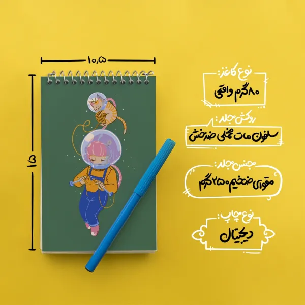 برند خندالو در زمینه تولید انواع دفاتر فانتزی و تحصیلی فعالیت میکند که به دلیل جذابیت ظاهری و طرح های متنوع طرفداران زیادی دارد. دفتر یادداشت خندالو طرح دخترانه فضایی محصولی مناسب برای همه عاشقان لوازم التحریر است و همچنین همه کسانی که بنا به موقعیت تحصیل یا شغلشان با دفتر و نوشت افزار زیاد سر و کار دارند. در تولید دفتر یادداشت خندالو طرح دخترانه فضایی از نوع صحافی فنر مارپیچ استفاده شده که در این نوع صحافی برگهها به راحتی چرخیده و یا بیرون آورده می شوند. دفتر های خندالو دارای جلد انعطاف پذیر از جنس مقوای گلاسه 250 گرم با روکش سلفون مات مخملی است که به شما امکان میدهد از دفتر خود بدون اینکه نگرانی از شکستن یا خراب شدن جلد را داشته باشید استفاده کنید و همچنین در این دفاتر از کاغذ 80 گرم با کیفیت استفاده شده که باعث میشود هنگام نوشتن به خوبی جوهر قلم بر روی صفحه نشسته و از خط خوردگیها جلوگیری کند. دفتر یادداشت خندالو با جنس و دوام مناسب، برگه های کاملاً سفید و خطوط طوسی دقیق را داراست که انسان را به نوشتن منظم و زیبا ترغیب میکند. طراحی کاملاً مناسب این دفاتر، به همراه کیفیت بالا، از آن یک محصول مورد علاقه و قابل اعتماد برای همه مقاطع تحصیلی میسازد. دفتر یادداشت خندالو طرح دخترانه فضایی انتخابی هوشمندانه و مناسب برای افرادی است که به دنبال دفتری با کیفیت و کاربرد عالی هستند. این دفتر، همراه خوبی برای شما در تمام مراحل تحصیل و کار خواهد بود و تجربهای لذتبخش از نوشتن و آموختن را به شما هدیه میدهد.