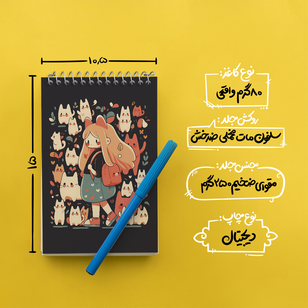 برند خندالو در زمینه تولید انواع دفاتر فانتزی و تحصیلی فعالیت میکند که به دلیل جذابیت ظاهری و طرح های متنوع طرفداران زیادی دارد. دفتر یادداشت خندالو طرح دخترانه و گربه محصولی مناسب برای همه عاشقان لوازم التحریر است و همچنین همه کسانی که بنا به موقعیت تحصیل یا شغلشان با دفتر و نوشت افزار زیاد سر و کار دارند. در تولید دفتر یادداشت خندالو طرح دخترانه و گربه از نوع صحافی فنر مارپیچ استفاده شده که در این نوع صحافی برگهها به راحتی چرخیده و یا بیرون آورده می شوند. دفتر های خندالو دارای جلد انعطاف پذیر از جنس مقوای گلاسه 250 گرم با روکش سلفون مات مخملی است که به شما امکان میدهد از دفتر خود بدون اینکه نگرانی از شکستن یا خراب شدن جلد را داشته باشید استفاده کنید و همچنین در این دفاتر از کاغذ 80 گرم با کیفیت استفاده شده که باعث میشود هنگام نوشتن به خوبی جوهر قلم بر روی صفحه نشسته و از خط خوردگیها جلوگیری کند. دفتر یادداشت خندالو با جنس و دوام مناسب، برگه های کاملاً سفید و خطوط طوسی دقیق را داراست که انسان را به نوشتن منظم و زیبا ترغیب میکند. طراحی کاملاً مناسب این دفاتر، به همراه کیفیت بالا، از آن یک محصول مورد علاقه و قابل اعتماد برای همه مقاطع تحصیلی میسازد. دفتر یادداشت خندالو طرح دخترانه و گربه انتخابی هوشمندانه و مناسب برای افرادی است که به دنبال دفتری با کیفیت و کاربرد عالی هستند. این دفتر، همراه خوبی برای شما در تمام مراحل تحصیل و کار خواهد بود و تجربهای لذتبخش از نوشتن و آموختن را به شما هدیه میدهد.