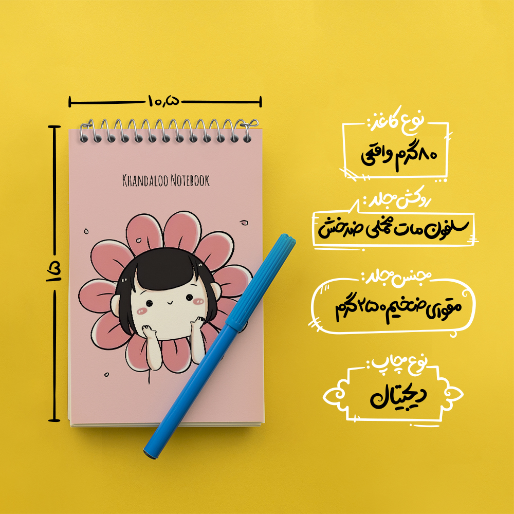 برند خندالو در زمینه تولید انواع دفاتر فانتزی و تحصیلی فعالیت میکند که به دلیل جذابیت ظاهری و طرح های متنوع طرفداران زیادی دارد. دفتر یادداشت خندالو طرح دخترانه کیوت محصولی مناسب برای همه عاشقان لوازم التحریر است و همچنین همه کسانی که بنا به موقعیت تحصیل یا شغلشان با دفتر و نوشت افزار زیاد سر و کار دارند. در تولید دفتر یادداشت خندالو طرح دخترانه کیوت از نوع صحافی فنر مارپیچ استفاده شده که در این نوع صحافی برگه‌ها به راحتی چرخیده و یا بیرون آورده می شوند.