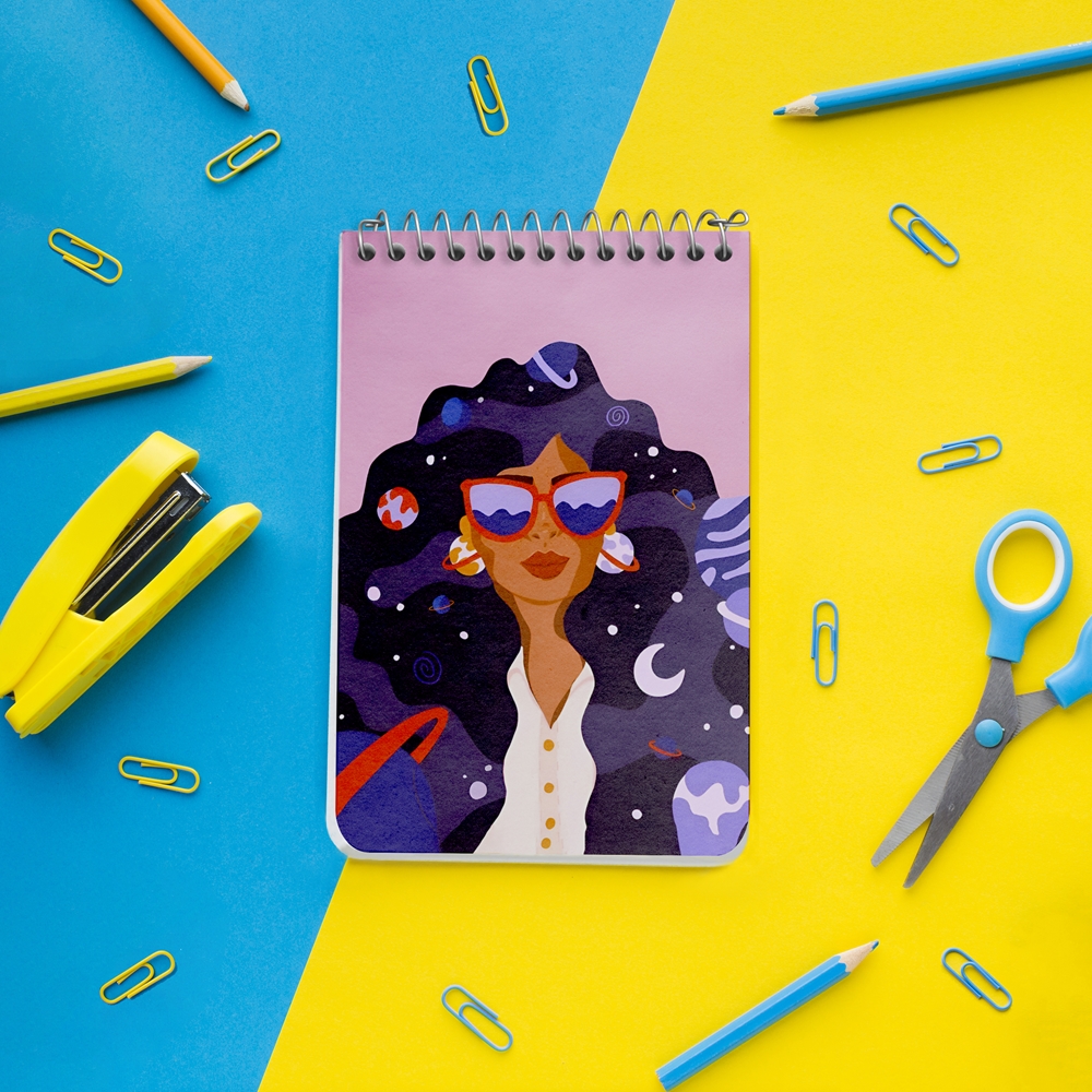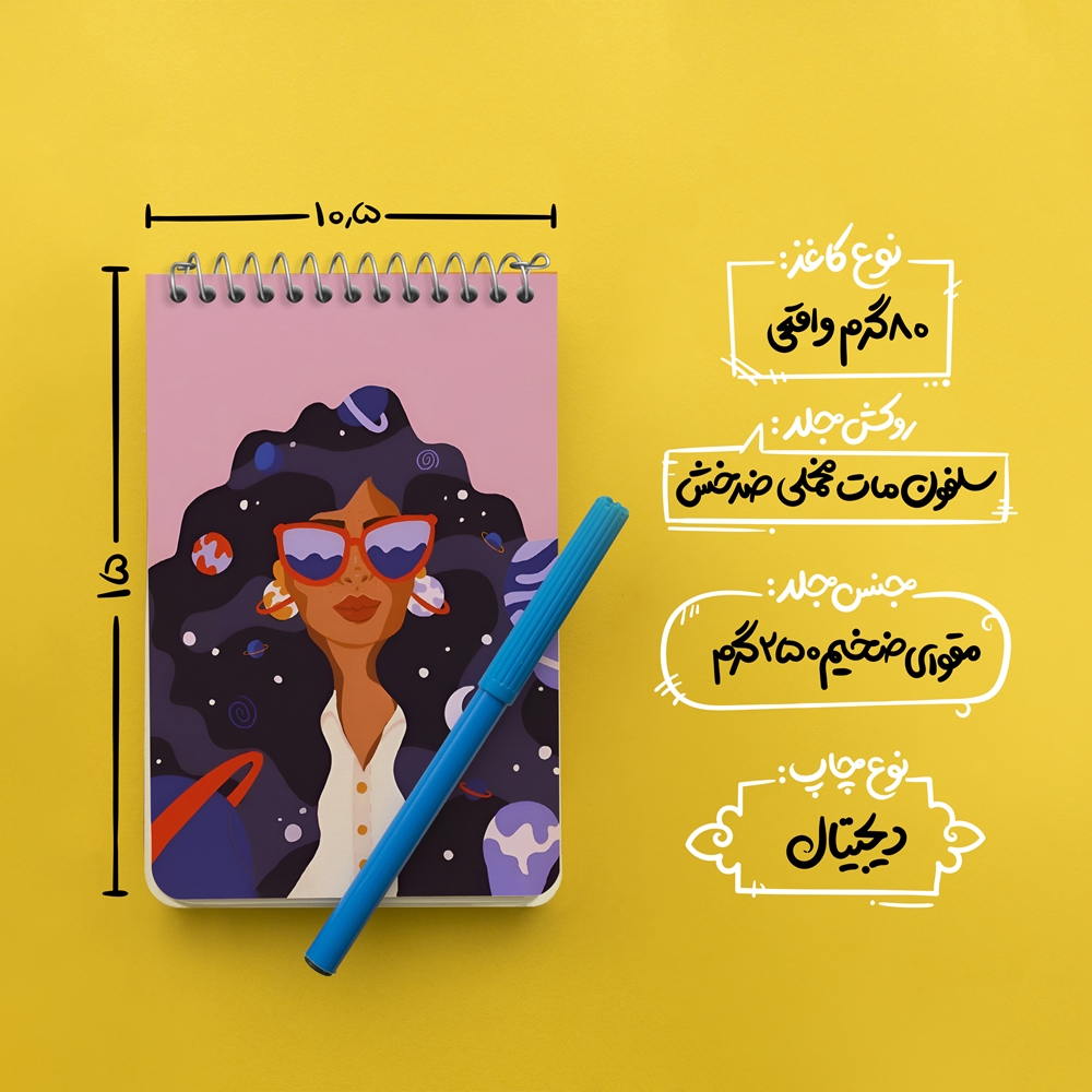 برند خندالو در زمینه تولید انواع دفاتر فانتزی و تحصیلی فعالیت میکند که به دلیل جذابیت ظاهری و طرح های متنوع طرفداران زیادی دارد. دفتر یادداشت خندالو طرح دخترانه ی کهکشانی محصولی مناسب برای همه عاشقان لوازم التحریر است و همچنین همه کسانی که بنا به موقعیت تحصیل یا شغلشان با دفتر و نوشت افزار زیاد سر و کار دارند. در تولید دفتر یادداشت خندالو طرح دخترانه ی کهکشانی از نوع صحافی فنر مارپیچ استفاده شده که در این نوع صحافی برگه‌ها به راحتی چرخیده و یا بیرون آورده می شوند.