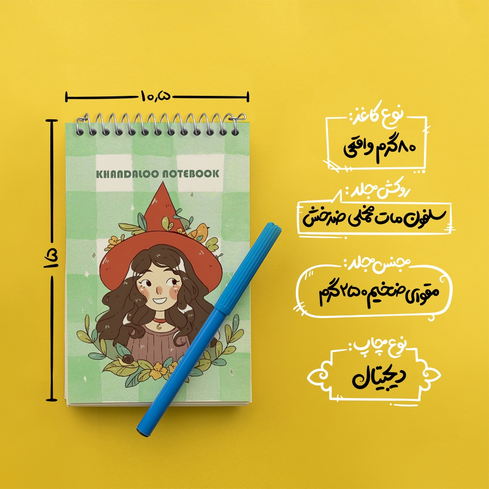 برند خندالو در زمینه تولید انواع دفاتر فانتزی و تحصیلی فعالیت میکند که به دلیل جذابیت ظاهری و طرح های متنوع طرفداران زیادی دارد. دفتر یادداشت خندالو طرح دخترانه محصولی مناسب برای همه عاشقان لوازم التحریر است و همچنین همه کسانی که بنا به موقعیت تحصیل یا شغلشان با دفتر و نوشت افزار زیاد سر و کار دارند. در تولید دفتر یادداشت خندالو طرح دخترانه از نوع صحافی فنر مارپیچ استفاده شده که در این نوع صحافی برگه‌ها به راحتی چرخیده و یا بیرون آورده می شوند.