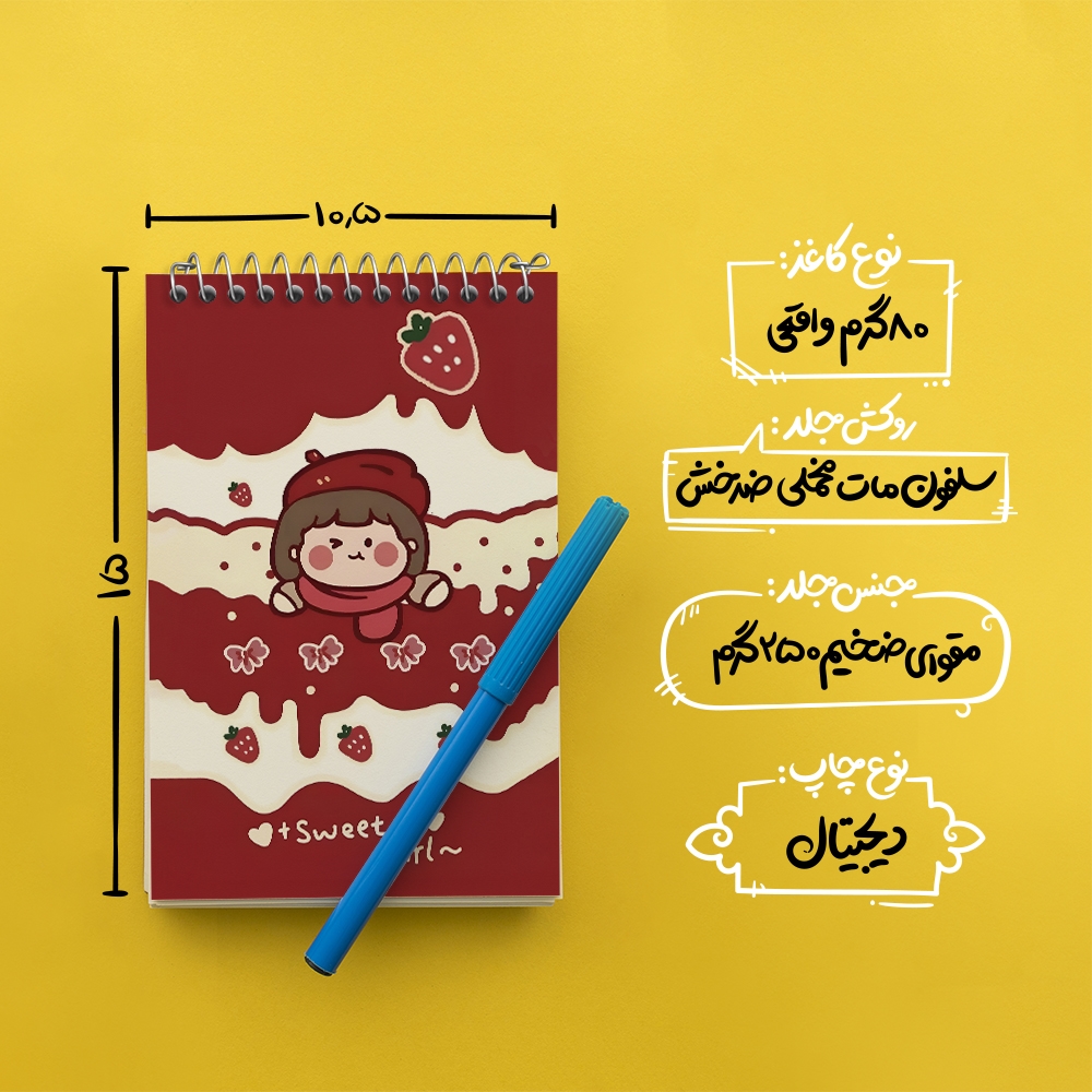 برند خندالو در زمینه تولید انواع دفاتر فانتزی و تحصیلی فعالیت میکند که به دلیل جذابیت ظاهری و طرح های متنوع طرفداران زیادی دارد. دفتر یادداشت خندالو طرح دخترانه محصولی مناسب برای همه عاشقان لوازم التحریر است و همچنین همه کسانی که بنا به موقعیت تحصیل یا شغلشان با دفتر و نوشت افزار زیاد سر و کار دارند. در تولید دفتر یادداشت خندالو طرح دخترانه از نوع صحافی فنر مارپیچ استفاده شده که در این نوع صحافی برگه‌ها به راحتی چرخیده و یا بیرون آورده می شوند.