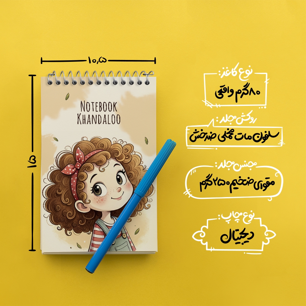 برند خندالو در زمینه تولید انواع دفاتر فانتزی و تحصیلی فعالیت میکند که به دلیل جذابیت ظاهری و طرح های متنوع طرفداران زیادی دارد. دفتر یادداشت خندالو طرح دخترانه محصولی مناسب برای همه عاشقان لوازم التحریر است و همچنین همه کسانی که بنا به موقعیت تحصیل یا شغلشان با دفتر و نوشت افزار زیاد سر و کار دارند. در تولید دفتر یادداشت خندالو طرح دخترانه از نوع صحافی فنر مارپیچ استفاده شده که در این نوع صحافی برگه‌ها به راحتی چرخیده و یا بیرون آورده می شوند.