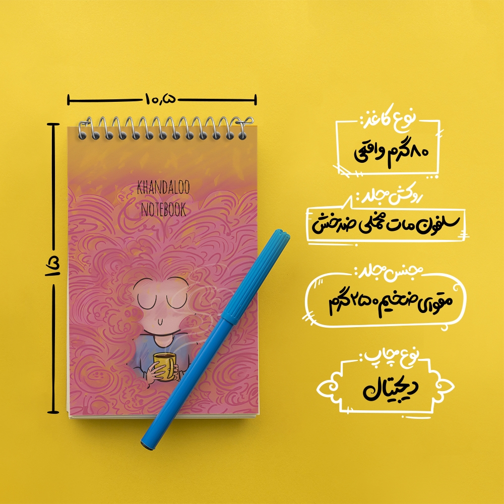 برند خندالو در زمینه تولید انواع دفاتر فانتزی و تحصیلی فعالیت میکند که به دلیل جذابیت ظاهری و طرح های متنوع طرفداران زیادی دارد. دفتر یادداشت خندالو طرح دخترانه محصولی مناسب برای همه عاشقان لوازم التحریر است و همچنین همه کسانی که بنا به موقعیت تحصیل یا شغلشان با دفتر و نوشت افزار زیاد سر و کار دارند. در تولید دفتر یادداشت خندالو طرح دخترانه از نوع صحافی فنر مارپیچ استفاده شده که در این نوع صحافی برگه‌ها به راحتی چرخیده و یا بیرون آورده می شوند.
