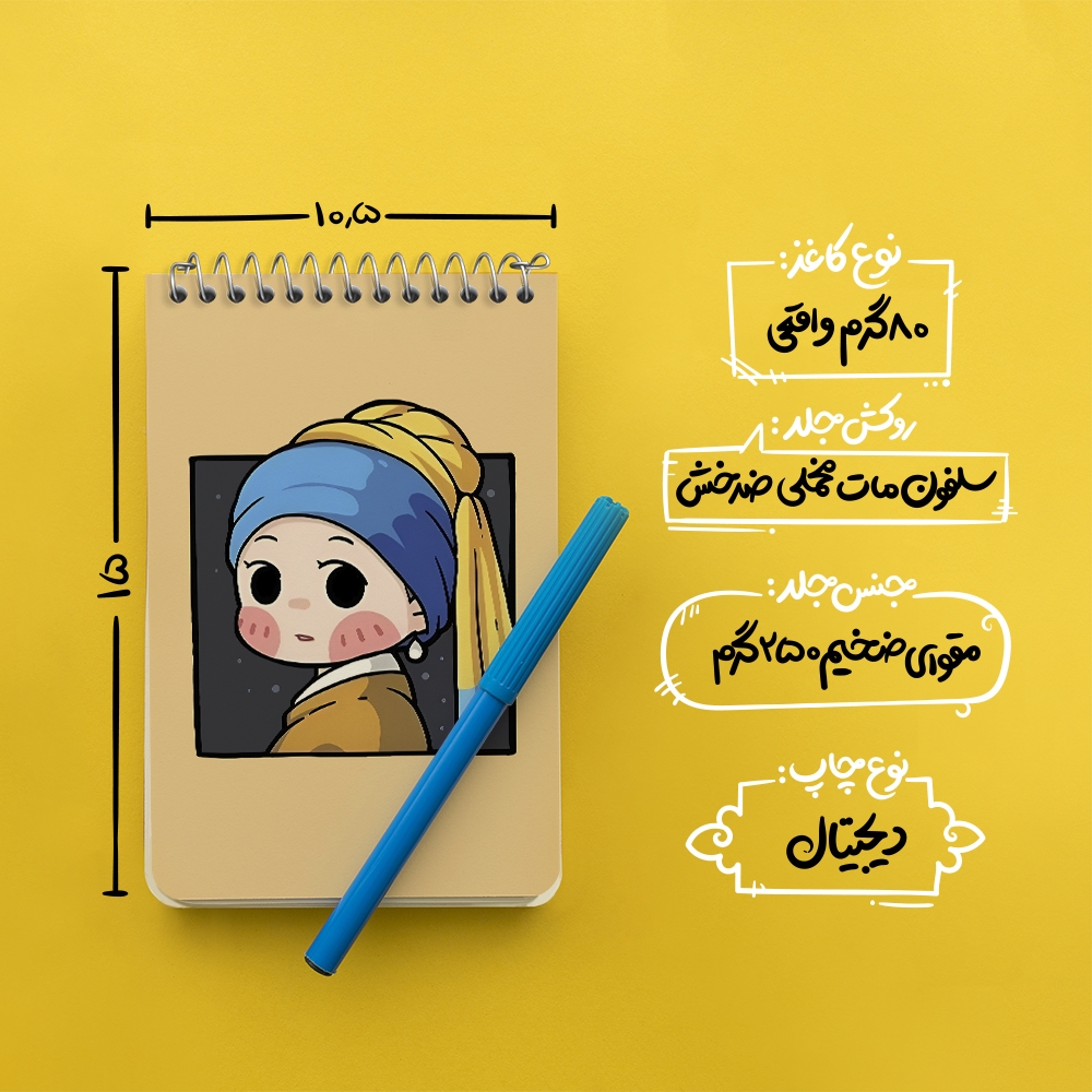 برند خندالو در زمینه تولید انواع دفاتر فانتزی و تحصیلی فعالیت میکند که به دلیل جذابیت ظاهری و طرح های متنوع طرفداران زیادی دارد. دفتر یادداشت خندالو طرح دختری با گوشواره مروارید محصولی مناسب برای همه عاشقان لوازم التحریر است و همچنین همه کسانی که بنا به موقعیت تحصیل یا شغلشان با دفتر و نوشت افزار زیاد سر و کار دارند. در تولید دفتر یادداشت خندالو طرح دختری با گوشواره مروارید از نوع صحافی فنر مارپیچ استفاده شده که در این نوع صحافی برگهها به راحتی چرخیده و یا بیرون آورده می شوند. دفتر های خندالو دارای جلد انعطاف پذیر از جنس مقوای گلاسه 250 گرم با روکش سلفون مات مخملی است که به شما امکان میدهد از دفتر خود بدون اینکه نگرانی از شکستن یا خراب شدن جلد را داشته باشید استفاده کنید و همچنین در این دفاتر از کاغذ 80 گرم با کیفیت استفاده شده که باعث میشود هنگام نوشتن به خوبی جوهر قلم بر روی صفحه نشسته و از خط خوردگیها جلوگیری کند. دفتر یادداشت خندالو با جنس و دوام مناسب، برگه های کاملاً سفید و خطوط طوسی دقیق را داراست که انسان را به نوشتن منظم و زیبا ترغیب میکند. طراحی کاملاً مناسب این دفاتر، به همراه کیفیت بالا، از آن یک محصول مورد علاقه و قابل اعتماد برای همه مقاطع تحصیلی میسازد. دفتر یادداشت خندالو طرح دختری با گوشواره مروارید انتخابی هوشمندانه و مناسب برای افرادی است که به دنبال دفتری با کیفیت و کاربرد عالی هستند. این دفتر، همراه خوبی برای شما در تمام مراحل تحصیل و کار خواهد بود و تجربهای لذتبخش از نوشتن و آموختن را به شما هدیه میدهد.