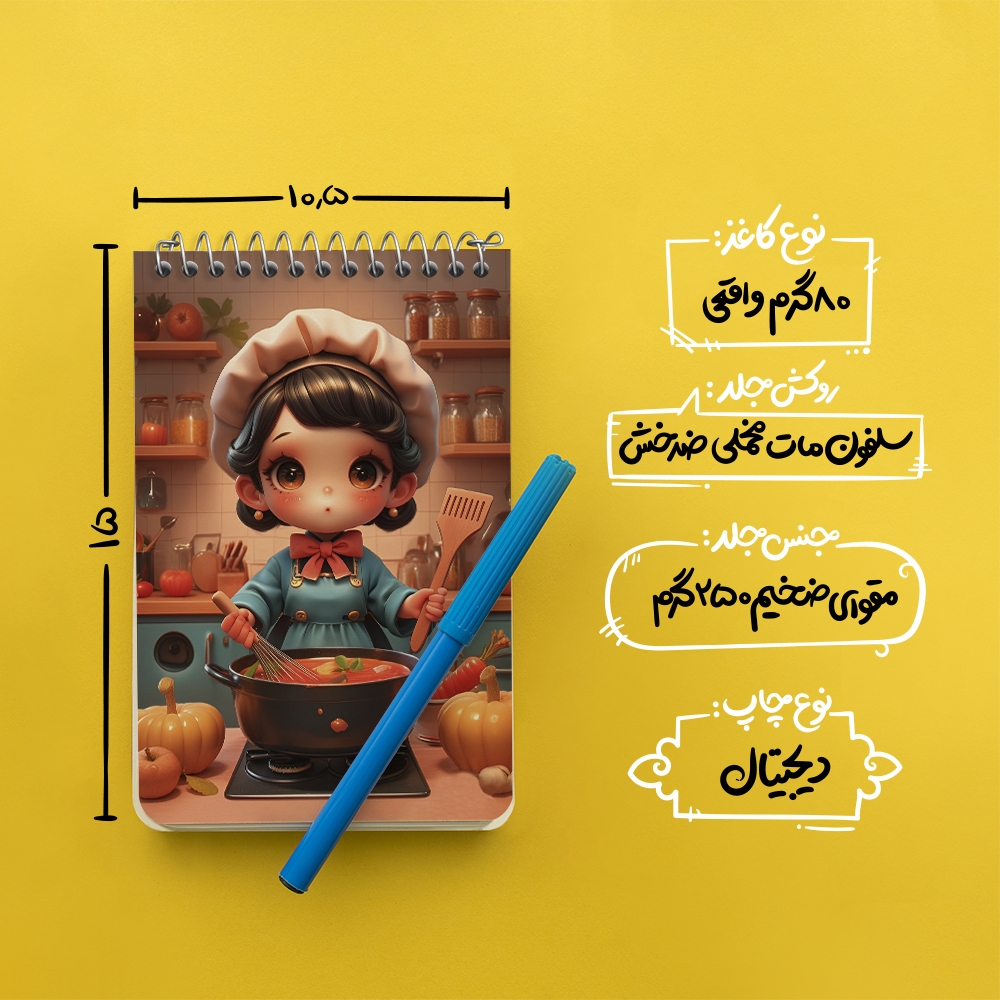 برند خندالو در زمینه تولید انواع دفاتر فانتزی و تحصیلی فعالیت میکند که به دلیل جذابیت ظاهری و طرح های متنوع طرفداران زیادی دارد. دفتر یادداشت خندالو طرح دختر آشپز محصولی مناسب برای همه عاشقان لوازم التحریر است و همچنین همه کسانی که بنا به موقعیت تحصیل یا شغلشان با دفتر و نوشت افزار زیاد سر و کار دارند. در تولید دفتر یادداشت خندالو طرح دختر آشپز از نوع صحافی فنر مارپیچ استفاده شده که در این نوع صحافی برگهها به راحتی چرخیده و یا بیرون آورده می شوند. دفتر های خندالو دارای جلد انعطاف پذیر از جنس مقوای گلاسه 250 گرم با روکش سلفون مات مخملی است که به شما امکان میدهد از دفتر خود بدون اینکه نگرانی از شکستن یا خراب شدن جلد را داشته باشید استفاده کنید و همچنین در این دفاتر از کاغذ 80 گرم با کیفیت استفاده شده که باعث میشود هنگام نوشتن به خوبی جوهر قلم بر روی صفحه نشسته و از خط خوردگیها جلوگیری کند. دفتر یادداشت خندالو با جنس و دوام مناسب، برگه های کاملاً سفید و خطوط طوسی دقیق را داراست که انسان را به نوشتن منظم و زیبا ترغیب میکند. طراحی کاملاً مناسب این دفاتر، به همراه کیفیت بالا، از آن یک محصول مورد علاقه و قابل اعتماد برای همه مقاطع تحصیلی میسازد. دفتر یادداشت خندالو طرح دختر آشپز انتخابی هوشمندانه و مناسب برای افرادی است که به دنبال دفتری با کیفیت و کاربرد عالی هستند. این دفتر، همراه خوبی برای شما در تمام مراحل تحصیل و کار خواهد بود و تجربهای لذتبخش از نوشتن و آموختن را به شما هدیه میدهد.