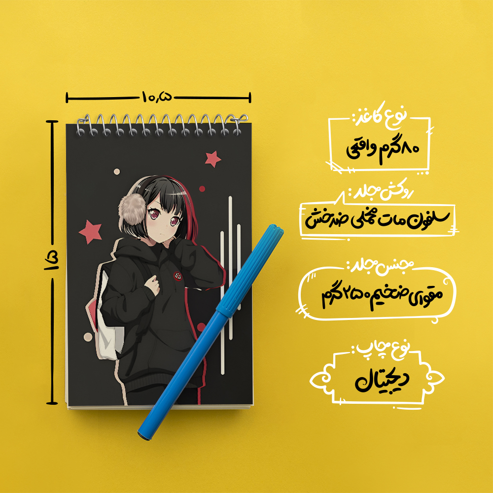 برند خندالو در زمینه تولید انواع دفاتر فانتزی و تحصیلی فعالیت میکند که به دلیل جذابیت ظاهری و طرح های متنوع طرفداران زیادی دارد. دفتر یادداشت خندالو طرح دختر انیمه ای محصولی مناسب برای همه عاشقان لوازم التحریر است و همچنین همه کسانی که بنا به موقعیت تحصیل یا شغلشان با دفتر و نوشت افزار زیاد سر و کار دارند. در تولید دفتر یادداشت خندالو طرح دختر انیمه ای از نوع صحافی فنر مارپیچ استفاده شده که در این نوع صحافی برگه‌ها به راحتی چرخیده و یا بیرون آورده می شوند.