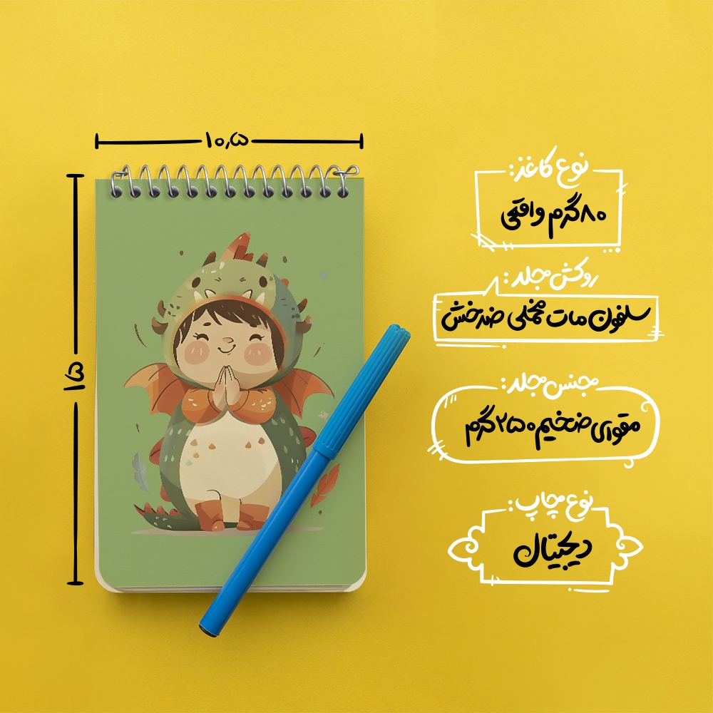 برند خندالو در زمینه تولید انواع دفاتر فانتزی و تحصیلی فعالیت میکند که به دلیل جذابیت ظاهری و طرح های متنوع طرفداران زیادی دارد. دفتر یادداشت خندالو طرح دختر اژدهایی کیوت محصولی مناسب برای همه عاشقان لوازم التحریر است و همچنین همه کسانی که بنا به موقعیت تحصیل یا شغلشان با دفتر و نوشت افزار زیاد سر و کار دارند. در تولید دفتر یادداشت خندالو طرح دختر اژدهایی کیوت از نوع صحافی فنر مارپیچ استفاده شده که در این نوع صحافی برگهها به راحتی چرخیده و یا بیرون آورده می شوند. دفتر های خندالو دارای جلد انعطاف پذیر از جنس مقوای گلاسه 250 گرم با روکش سلفون مات مخملی است که به شما امکان میدهد از دفتر خود بدون اینکه نگرانی از شکستن یا خراب شدن جلد را داشته باشید استفاده کنید و همچنین در این دفاتر از کاغذ 80 گرم با کیفیت استفاده شده که باعث میشود هنگام نوشتن به خوبی جوهر قلم بر روی صفحه نشسته و از خط خوردگیها جلوگیری کند. دفتر یادداشت خندالو با جنس و دوام مناسب، برگه های کاملاً سفید و خطوط طوسی دقیق را داراست که انسان را به نوشتن منظم و زیبا ترغیب میکند. طراحی کاملاً مناسب این دفاتر، به همراه کیفیت بالا، از آن یک محصول مورد علاقه و قابل اعتماد برای همه مقاطع تحصیلی میسازد. دفتر یادداشت خندالو طرح دختر اژدهایی کیوت انتخابی هوشمندانه و مناسب برای افرادی است که به دنبال دفتری با کیفیت و کاربرد عالی هستند. این دفتر، همراه خوبی برای شما در تمام مراحل تحصیل و کار خواهد بود و تجربهای لذتبخش از نوشتن و آموختن را به شما هدیه میدهد.