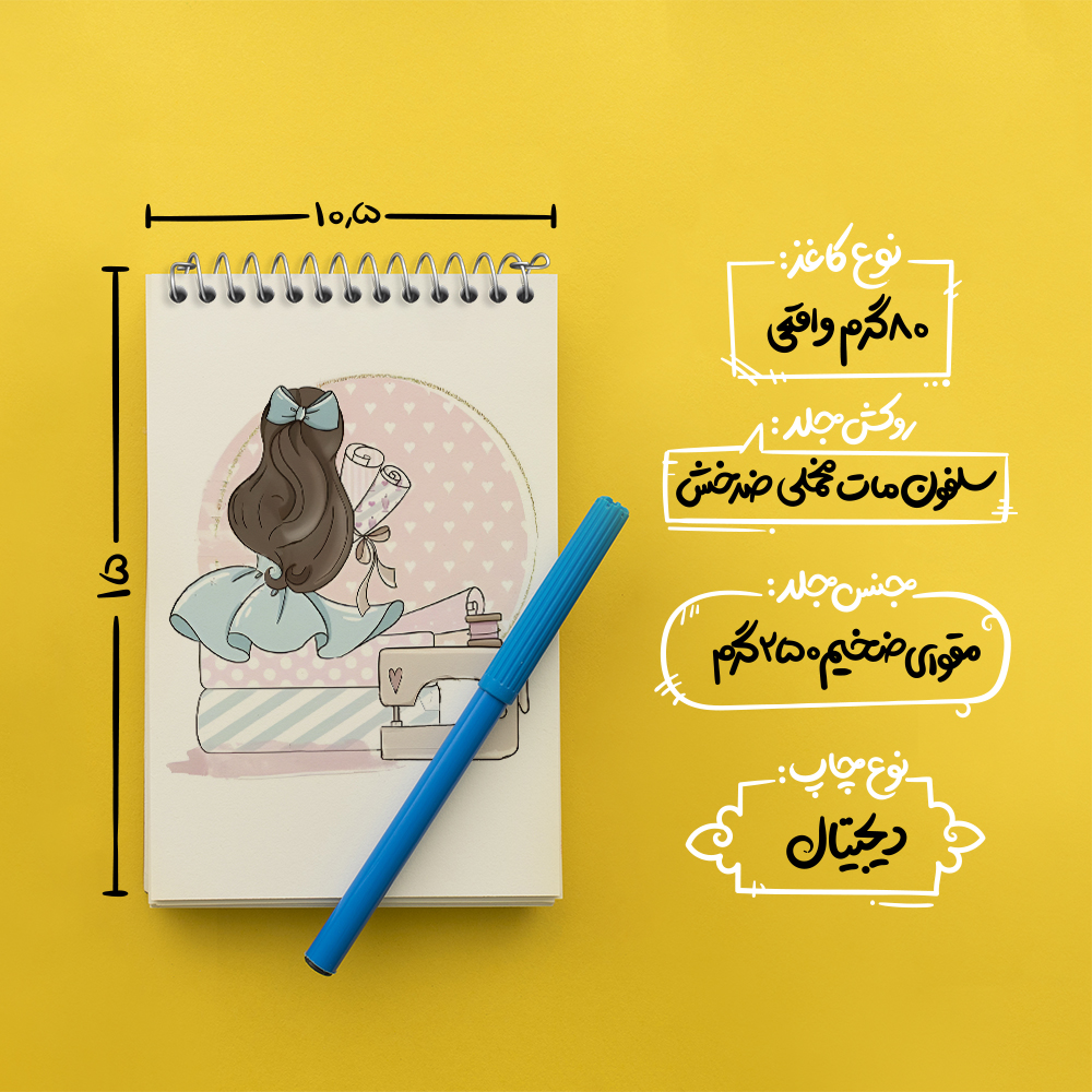 برند خندالو در زمینه تولید انواع دفاتر فانتزی و تحصیلی فعالیت میکند که به دلیل جذابیت ظاهری و طرح های متنوع طرفداران زیادی دارد. دفتر یادداشت خندالو طرح دختر خیاط محصولی مناسب برای همه عاشقان لوازم التحریر است و همچنین همه کسانی که بنا به موقعیت تحصیل یا شغلشان با دفتر و نوشت افزار زیاد سر و کار دارند. در تولید دفتر یادداشت خندالو طرح دختر خیاط از نوع صحافی فنر مارپیچ استفاده شده که در این نوع صحافی برگهها به راحتی چرخیده و یا بیرون آورده می شوند. دفتر های خندالو دارای جلد انعطاف پذیر از جنس مقوای گلاسه 250 گرم با روکش سلفون مات مخملی است که به شما امکان میدهد از دفتر خود بدون اینکه نگرانی از شکستن یا خراب شدن جلد را داشته باشید استفاده کنید و همچنین در این دفاتر از کاغذ 80 گرم با کیفیت استفاده شده که باعث میشود هنگام نوشتن به خوبی جوهر قلم بر روی صفحه نشسته و از خط خوردگیها جلوگیری کند. دفتر یادداشت خندالو با جنس و دوام مناسب، برگه های کاملاً سفید و خطوط طوسی دقیق را داراست که انسان را به نوشتن منظم و زیبا ترغیب میکند. طراحی کاملاً مناسب این دفاتر، به همراه کیفیت بالا، از آن یک محصول مورد علاقه و قابل اعتماد برای همه مقاطع تحصیلی میسازد. دفتر یادداشت خندالو طرح دختر خیاط انتخابی هوشمندانه و مناسب برای افرادی است که به دنبال دفتری با کیفیت و کاربرد عالی هستند. این دفتر، همراه خوبی برای شما در تمام مراحل تحصیل و کار خواهد بود و تجربهای لذتبخش از نوشتن و آموختن را به شما هدیه میدهد.