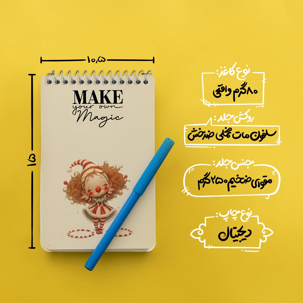 برند خندالو در زمینه تولید انواع دفاتر فانتزی و تحصیلی فعالیت میکند که به دلیل جذابیت ظاهری و طرح های متنوع طرفداران زیادی دارد. دفتر یادداشت خندالو طرح دختر دلقک محصولی مناسب برای همه عاشقان لوازم التحریر است و همچنین همه کسانی که بنا به موقعیت تحصیل یا شغلشان با دفتر و نوشت افزار زیاد سر و کار دارند. در تولید دفتر یادداشت خندالو طرح دختر دلقک از نوع صحافی فنر مارپیچ استفاده شده که در این نوع صحافی برگهها به راحتی چرخیده و یا بیرون آورده می شوند. دفتر های خندالو دارای جلد انعطاف پذیر از جنس مقوای گلاسه 250 گرم با روکش سلفون مات مخملی است که به شما امکان میدهد از دفتر خود بدون اینکه نگرانی از شکستن یا خراب شدن جلد را داشته باشید استفاده کنید و همچنین در این دفاتر از کاغذ 80 گرم با کیفیت استفاده شده که باعث میشود هنگام نوشتن به خوبی جوهر قلم بر روی صفحه نشسته و از خط خوردگیها جلوگیری کند. دفتر یادداشت خندالو با جنس و دوام مناسب، برگه های کاملاً سفید و خطوط طوسی دقیق را داراست که انسان را به نوشتن منظم و زیبا ترغیب میکند. طراحی کاملاً مناسب این دفاتر، به همراه کیفیت بالا، از آن یک محصول مورد علاقه و قابل اعتماد برای همه مقاطع تحصیلی میسازد. دفتر یادداشت خندالو طرح دختر دلقک انتخابی هوشمندانه و مناسب برای افرادی است که به دنبال دفتری با کیفیت و کاربرد عالی هستند. این دفتر، همراه خوبی برای شما در تمام مراحل تحصیل و کار خواهد بود و تجربهای لذتبخش از نوشتن و آموختن را به شما هدیه میدهد.