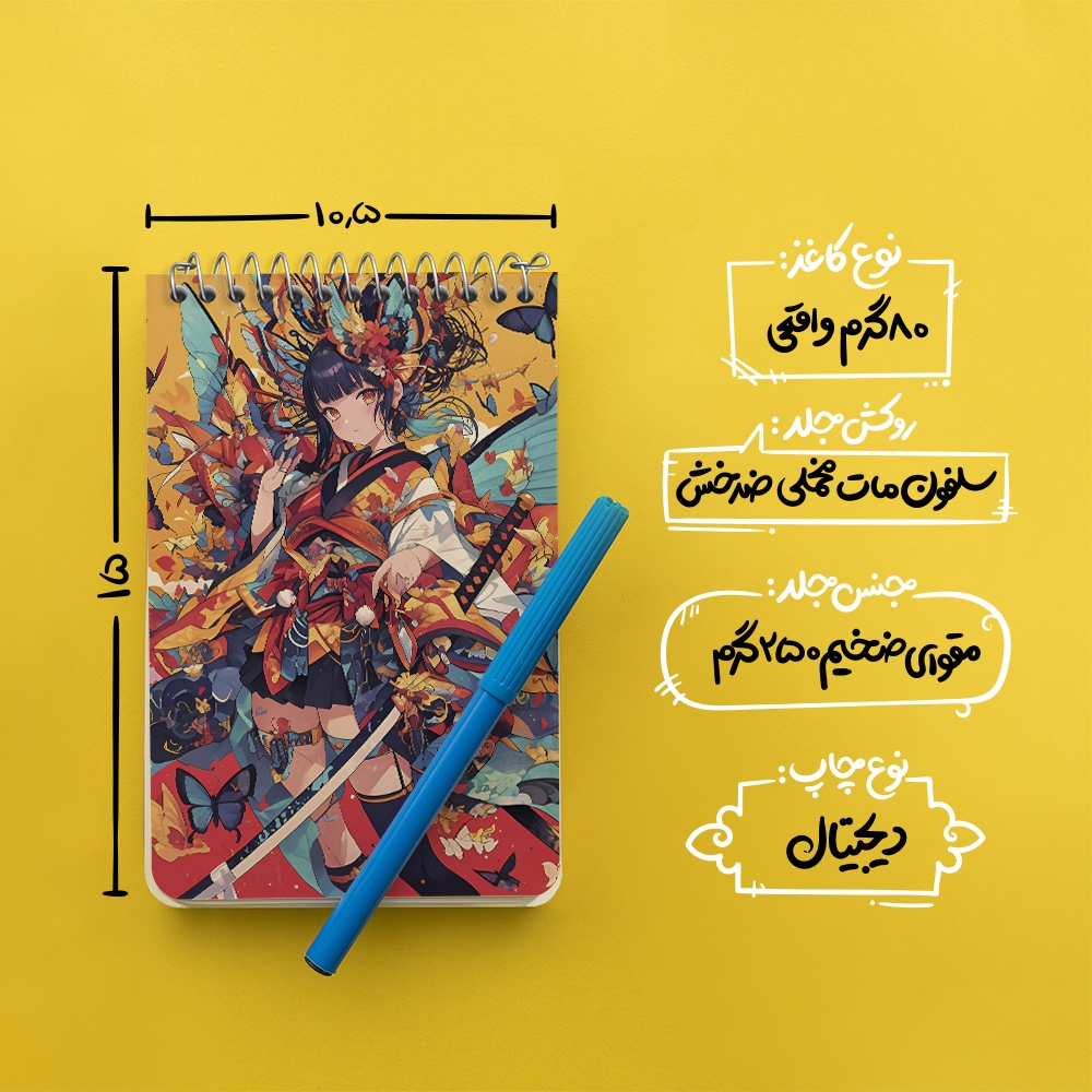 برند خندالو در زمینه تولید انواع دفاتر فانتزی و تحصیلی فعالیت میکند که به دلیل جذابیت ظاهری و طرح های متنوع طرفداران زیادی دارد. دفتر یادداشت خندالو طرح دختر سامورایی محصولی مناسب برای همه عاشقان لوازم التحریر است و همچنین همه کسانی که بنا به موقعیت تحصیل یا شغلشان با دفتر و نوشت افزار زیاد سر و کار دارند. در تولید دفتر یادداشت خندالو طرح دختر سامورایی از نوع صحافی فنر مارپیچ استفاده شده که در این نوع صحافی برگهها به راحتی چرخیده و یا بیرون آورده می شوند. دفتر های خندالو دارای جلد انعطاف پذیر از جنس مقوای گلاسه 250 گرم با روکش سلفون مات مخملی است که به شما امکان میدهد از دفتر خود بدون اینکه نگرانی از شکستن یا خراب شدن جلد را داشته باشید استفاده کنید و همچنین در این دفاتر از کاغذ 80 گرم با کیفیت استفاده شده که باعث میشود هنگام نوشتن به خوبی جوهر قلم بر روی صفحه نشسته و از خط خوردگیها جلوگیری کند. دفتر یادداشت خندالو با جنس و دوام مناسب، برگه های کاملاً سفید و خطوط طوسی دقیق را داراست که انسان را به نوشتن منظم و زیبا ترغیب میکند. طراحی کاملاً مناسب این دفاتر، به همراه کیفیت بالا، از آن یک محصول مورد علاقه و قابل اعتماد برای همه مقاطع تحصیلی میسازد. دفتر یادداشت خندالو طرح دختر سامورایی انتخابی هوشمندانه و مناسب برای افرادی است که به دنبال دفتری با کیفیت و کاربرد عالی هستند. این دفتر، همراه خوبی برای شما در تمام مراحل تحصیل و کار خواهد بود و تجربهای لذتبخش از نوشتن و آموختن را به شما هدیه میدهد.