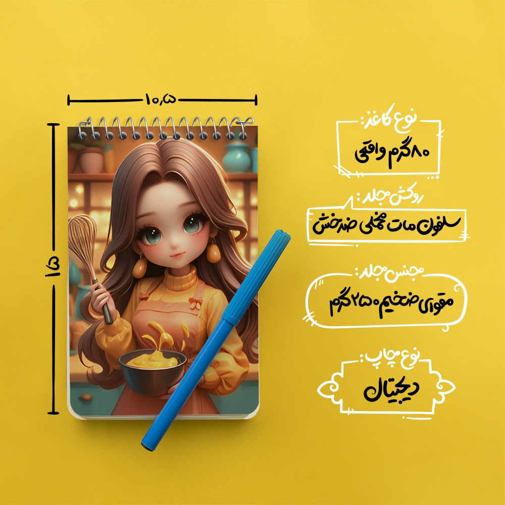 برند خندالو در زمینه تولید انواع دفاتر فانتزی و تحصیلی فعالیت میکند که به دلیل جذابیت ظاهری و طرح های متنوع طرفداران زیادی دارد. دفتر یادداشت خندالو طرح دختر شیرینی پز محصولی مناسب برای همه عاشقان لوازم التحریر است و همچنین همه کسانی که بنا به موقعیت تحصیل یا شغلشان با دفتر و نوشت افزار زیاد سر و کار دارند. در تولید دفتر یادداشت خندالو طرح دختر شیرینی پز از نوع صحافی فنر مارپیچ استفاده شده که در این نوع صحافی برگهها به راحتی چرخیده و یا بیرون آورده می شوند. دفتر های خندالو دارای جلد انعطاف پذیر از جنس مقوای گلاسه 250 گرم با روکش سلفون مات مخملی است که به شما امکان میدهد از دفتر خود بدون اینکه نگرانی از شکستن یا خراب شدن جلد را داشته باشید استفاده کنید و همچنین در این دفاتر از کاغذ 80 گرم با کیفیت استفاده شده که باعث میشود هنگام نوشتن به خوبی جوهر قلم بر روی صفحه نشسته و از خط خوردگیها جلوگیری کند. دفتر یادداشت خندالو با جنس و دوام مناسب، برگه های کاملاً سفید و خطوط طوسی دقیق را داراست که انسان را به نوشتن منظم و زیبا ترغیب میکند. طراحی کاملاً مناسب این دفاتر، به همراه کیفیت بالا، از آن یک محصول مورد علاقه و قابل اعتماد برای همه مقاطع تحصیلی میسازد. دفتر یادداشت خندالو طرح دختر شیرینی پز انتخابی هوشمندانه و مناسب برای افرادی است که به دنبال دفتری با کیفیت و کاربرد عالی هستند. این دفتر، همراه خوبی برای شما در تمام مراحل تحصیل و کار خواهد بود و تجربهای لذتبخش از نوشتن و آموختن را به شما هدیه میدهد.