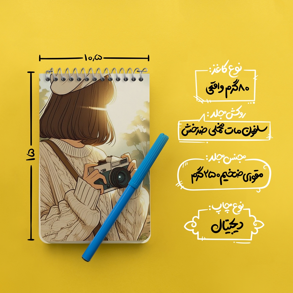 برند خندالو در زمینه تولید انواع دفاتر فانتزی و تحصیلی فعالیت میکند که به دلیل جذابیت ظاهری و طرح های متنوع طرفداران زیادی دارد. دفتر یادداشت خندالو طرح دختر عکاس محصولی مناسب برای همه عاشقان لوازم التحریر است و همچنین همه کسانی که بنا به موقعیت تحصیل یا شغلشان با دفتر و نوشت افزار زیاد سر و کار دارند. در تولید دفتر یادداشت خندالو طرح دختر عکاس از نوع صحافی فنر مارپیچ استفاده شده که در این نوع صحافی برگه‌ها به راحتی چرخیده و یا بیرون آورده می شوند.
