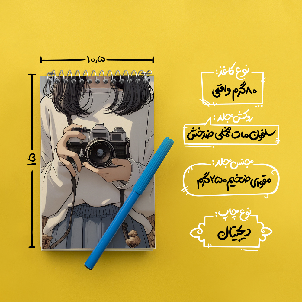 برند خندالو در زمینه تولید انواع دفاتر فانتزی و تحصیلی فعالیت میکند که به دلیل جذابیت ظاهری و طرح های متنوع طرفداران زیادی دارد. دفتر یادداشت خندالو طرح دختر عکاس محصولی مناسب برای همه عاشقان لوازم التحریر است و همچنین همه کسانی که بنا به موقعیت تحصیل یا شغلشان با دفتر و نوشت افزار زیاد سر و کار دارند. در تولید دفتر یادداشت خندالو طرح دختر عکاس از نوع صحافی فنر مارپیچ استفاده شده که در این نوع صحافی برگه‌ها به راحتی چرخیده و یا بیرون آورده می شوند.